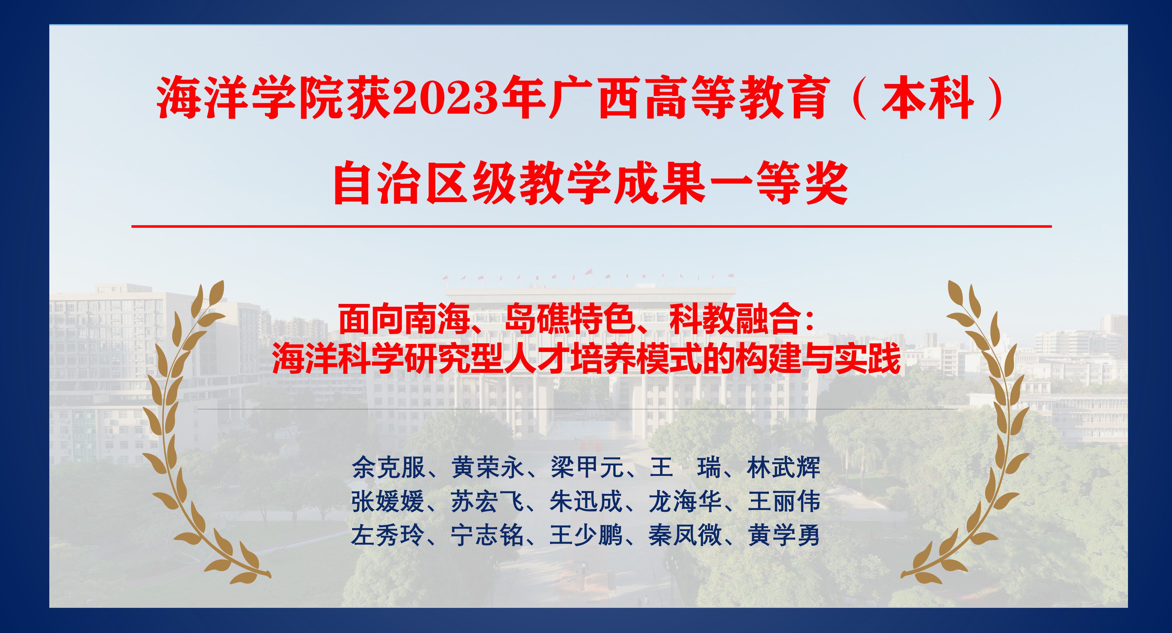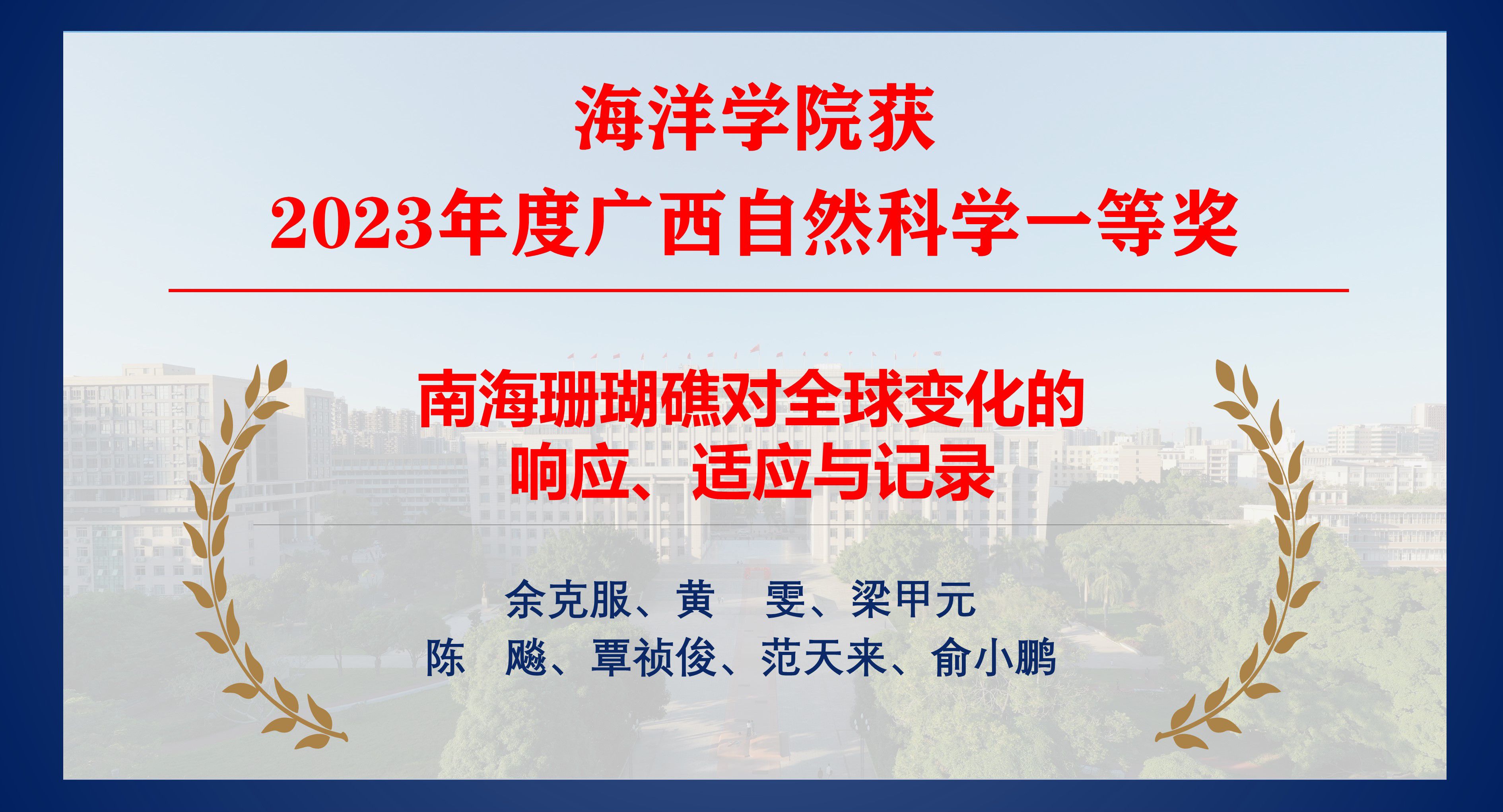 太阳成集团122ccvip珊瑚礁研究成果荣获2023年度广西自...