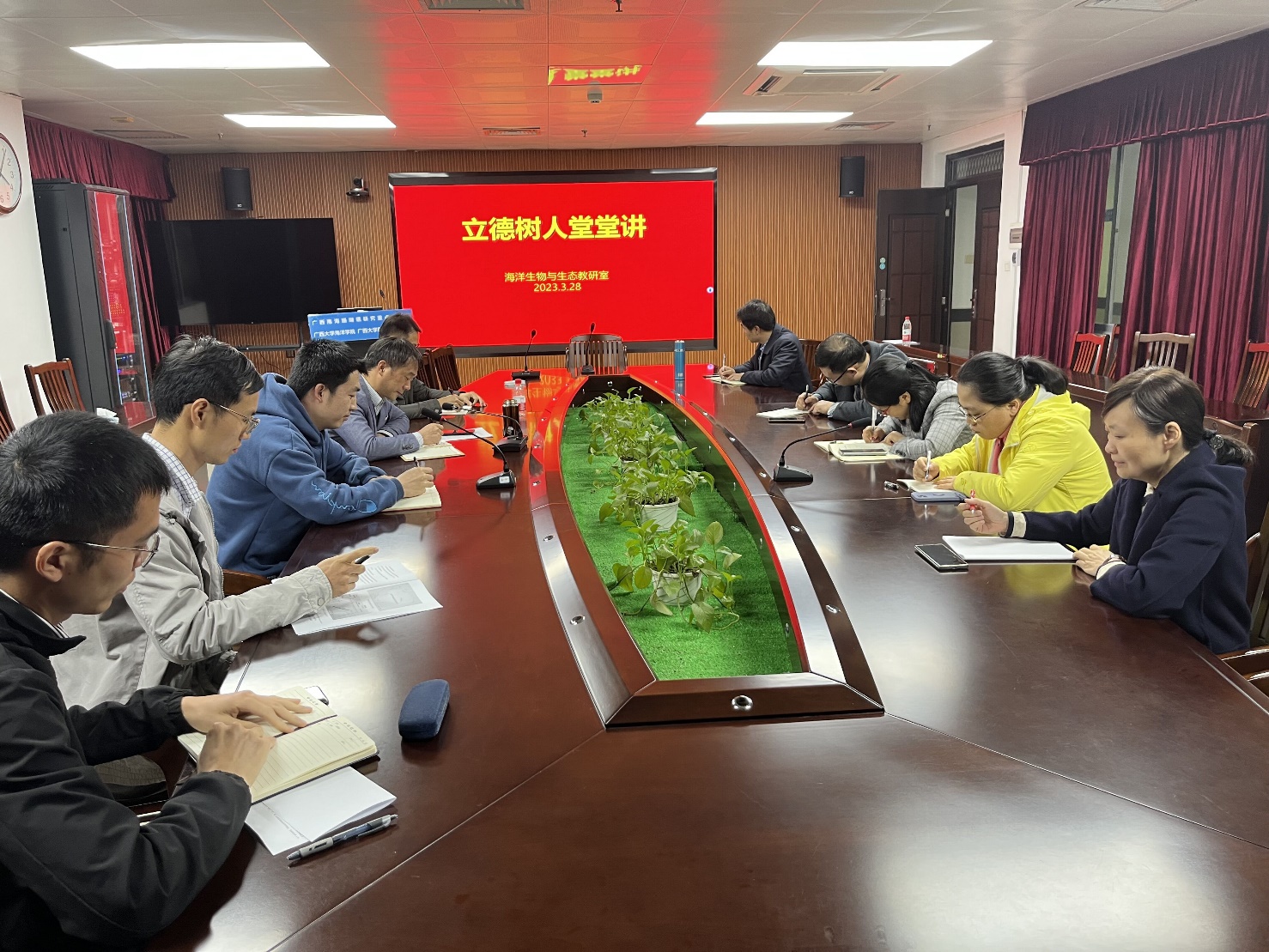 为学习领会党的二十大精神和习近平总书记关于学校思政课建设的重要指示批示精神,深入贯彻落实《太阳成集团122ccvip“立德树人堂堂讲”课程思政实施方案》要求,提高太阳成集团122ccvip课程思政实效,3月28日下午,在学院党委的指导下,生物与生态教研室和物理海洋教研室老师分别开展“立德树人堂堂讲”课程思政集体备课。学院党委副书记朱迅成参加了生物与生态教研室的思政课程集体备课会。