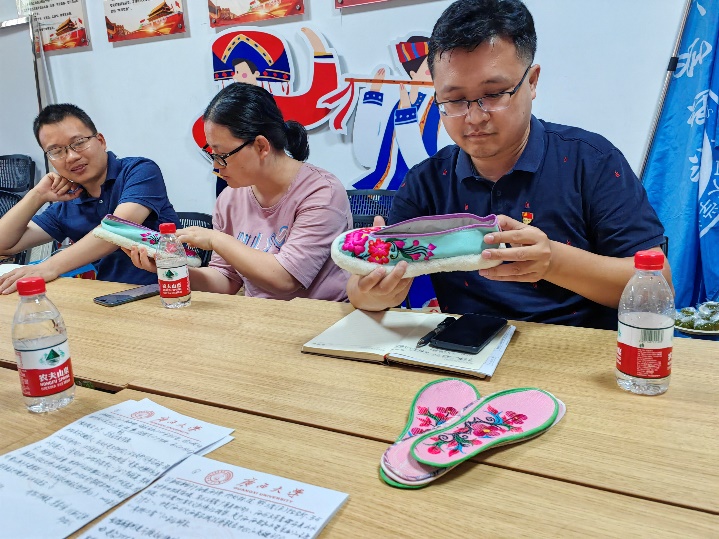在分享会上,罗兰花主任给大家带来了精彩纷呈的演讲。她是土生土长的西林人,出身壮族家庭,从小就与养育她长大的那片热土和各族人民有着深厚的感情。大学毕业后,她直接回到故乡,长期扎根在少数民族地区基层一线,有着丰富的工作经历。她向大家分享了西林县的概貌、历史、文化、民族以及团结融合等有关少数民族的情况,也讲述了她如何与当地的各族人民一起完成脱贫攻坚、进行着乡村振兴工作。党员们通过聆听演讲、观看图片、欣赏壮语歌曲、触摸实物等方式收获了西林县少数民族的相关知识。同时,大家也在分享会上谈及自己的民族和文化。在愉悦的氛围中,大家都感受到了加强民族团结的向心力和凝聚力。