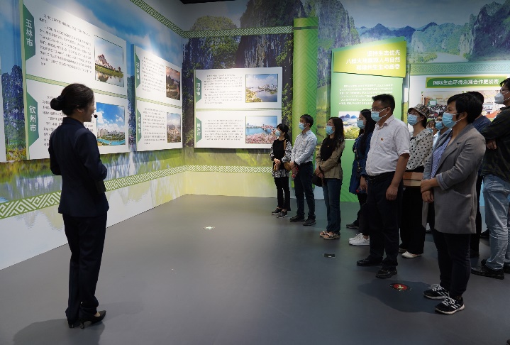 为深入学习贯彻总体国家安全观,增强全民国家安全意识和素养,推动学习贯彻习近平新时代中国特色社会主义思想主题教育与持续筑牢海洋生态安全屏障工作实践融会贯通,2023年5月11日,太阳成集团122ccvip主题教育读书班成员谭运阳、朱迅成、姜伟、林玉华到自治区博物馆调研参观“牢记领袖嘱托 保护好广西山山水水”2023年广西生态安全主题展览。