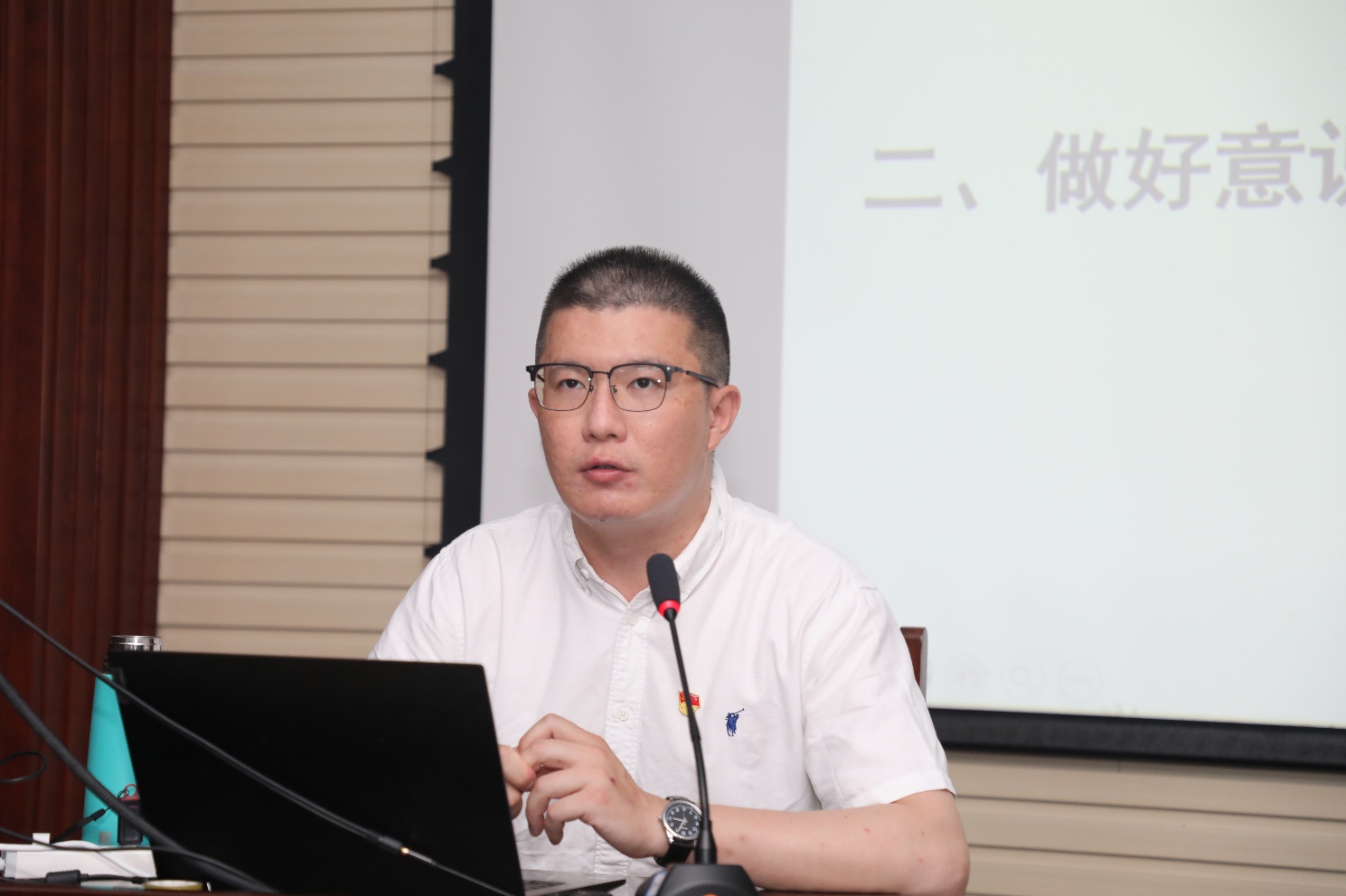 在党课中,庄严副教授通过举例论证的方式,为我们列举了目前我国在意识形态领域中出现偏差的典型事件,他一一指出事件中存在的错误,并深入分析乱象背后所潜在的危机,让大家了解到当前国际形势复杂多变,意识到必须清醒认识意识形态领域斗争的严峻性、复杂性和长期性。他强调,要始终坚持马克思主义在意识形态领域的指导地位,广泛践行和弘扬社会主义核心价值观,巩固壮大主流思想舆论,牢牢掌握党对意识形态领域工作的领导权,意识形态工作必须居安思危,落实领导责任,健全工作制度,不断加强学习和强化理论武装,提高预警预防和处置能力,始终牢记以人民为中心的工作策略,并且做好“持久战”的准备。