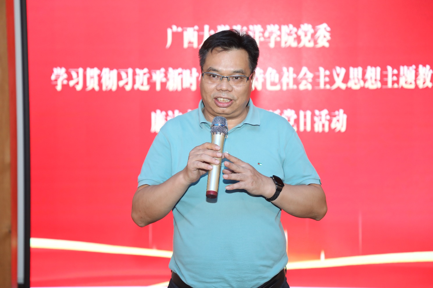 在活动的最后,党委书记谭运阳做了总结发言。他指出要深入学习贯彻习近平总书记关于全面从严治党系列重要论述,坚持把加强廉洁文化建设作为一体推进不敢腐、不能腐、不想腐的基础性工作,科学谋划,采取有力举措,抓好落地落实,切实通过廉洁文化建设不断增强党员干部的思想自觉、政治自觉、行动自觉。他强调具体落实到每一个党员身上就是要坚持以案为鉴,时刻警钟长鸣;立足本职岗位,履职尽责;自律克己、求真务实。