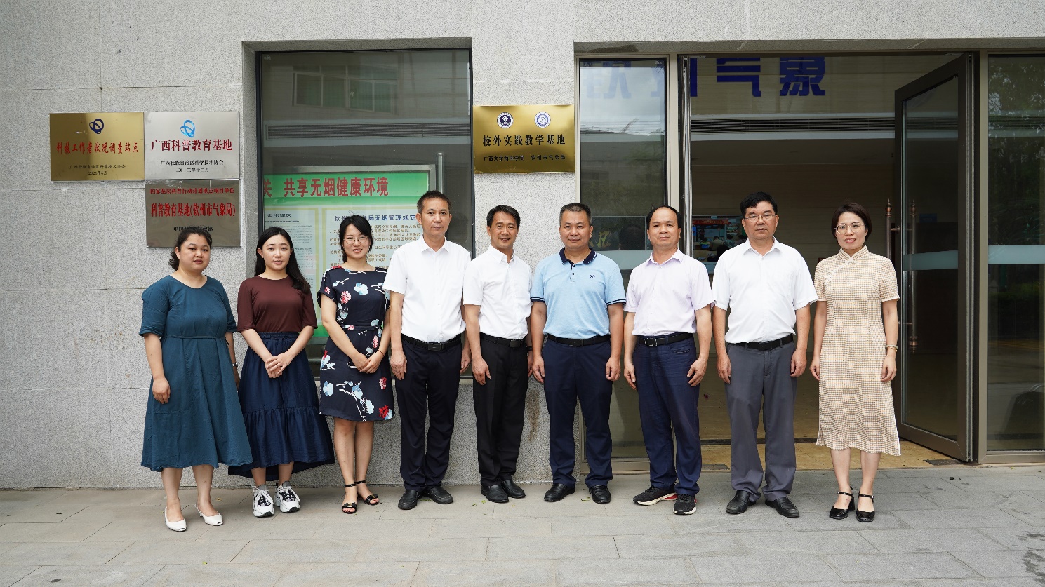 钦州市气象局丘远锋局长(右四)、太阳成集团122ccvip朱迅成副书记(右五)为校外实践教学基地合作挂牌