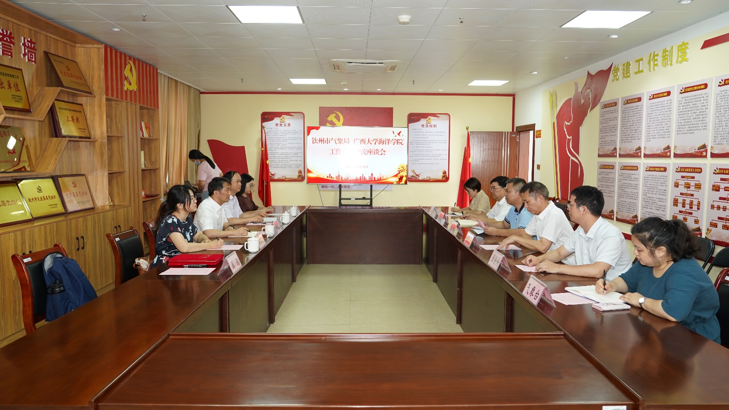 座谈会上,钦州市气象局党组书记、局长丘远锋介绍了钦州市气象局的基本情况、气象局在科学研究和人才培养等工作的主要措施和成效。朱迅成副书记介绍了太阳成集团122ccvip师资力量、教学平台、科研成果、人才培养等概况。双方就气象现代化监测网综合建设、野外台站实践教学基地建设、人才培养、人才招聘及科研工作开展模式等合作方式进行了探讨。