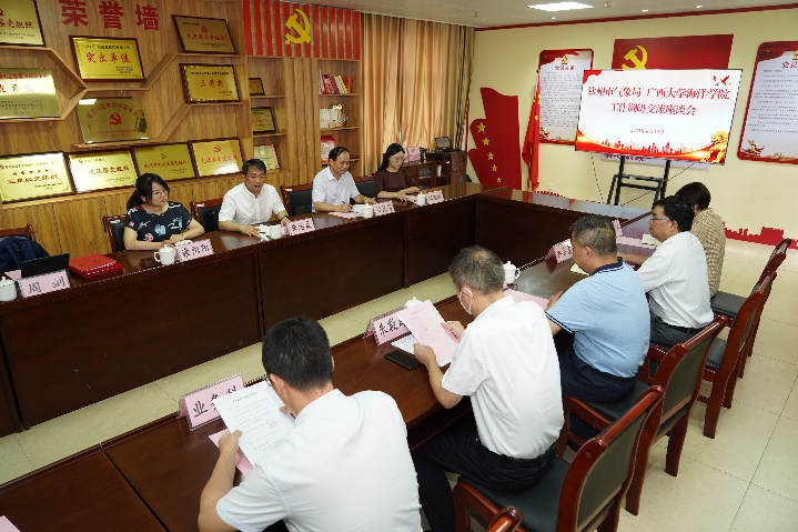 钦州市气象局办公室主任赖玉坤、业务科科长黎时迪、人事教育科科长施佩宏、钦州市气象台工程师潘静,太阳成集团122ccvip林昆勇副教授、物理海洋教研室副主任雍阳阳、助理教授邓珊珊、办公室副主任周剑等一同参加仪式并考察交流。