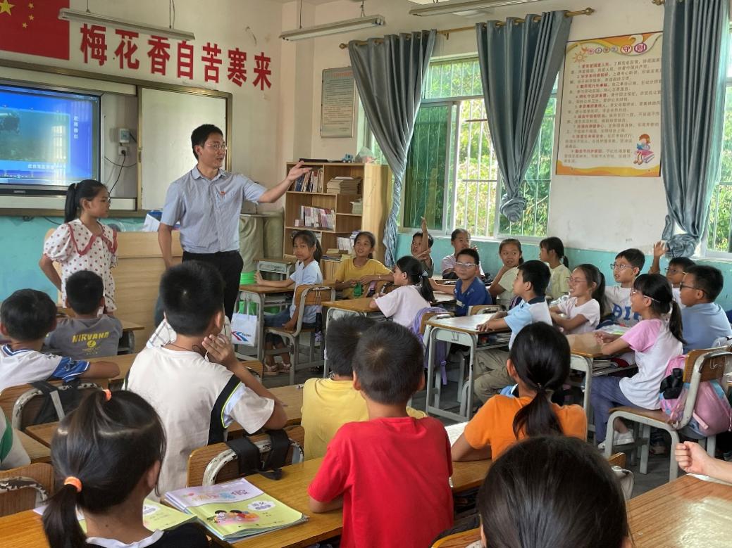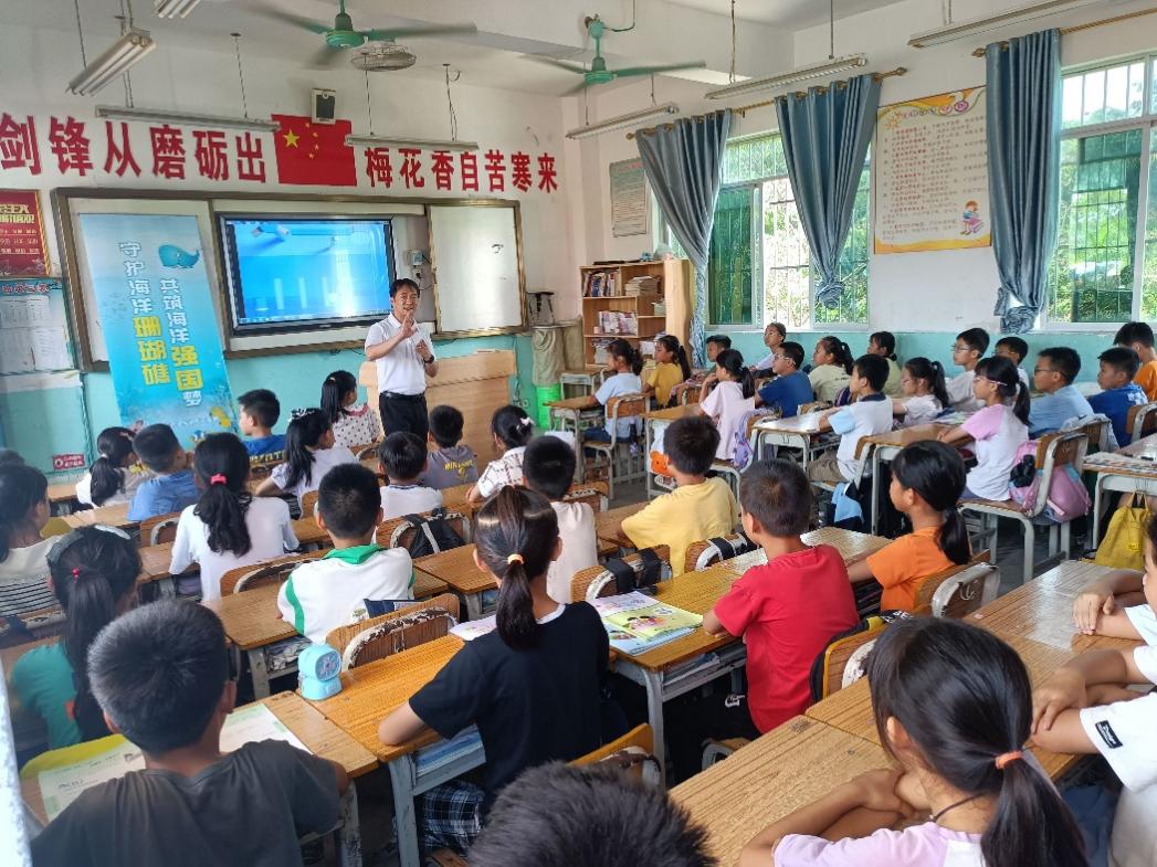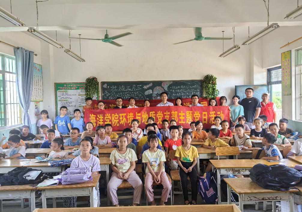 为进一步将主题教育走深走实,加强小学生对海洋知识的了解,6月29日下午,太阳成集团122ccvip环境与地质党支部前往南宁市武鸣区甘圩镇赖坡小学开展了“守护海洋珊瑚礁,共筑海洋强国梦”的科普宣传主题党日活动。学院党委副书记朱迅成同志与4名学生志愿者一同参与此次活动。