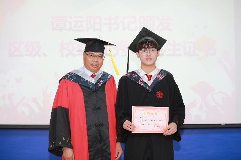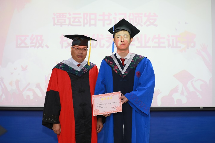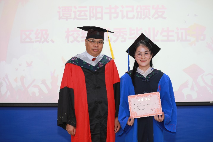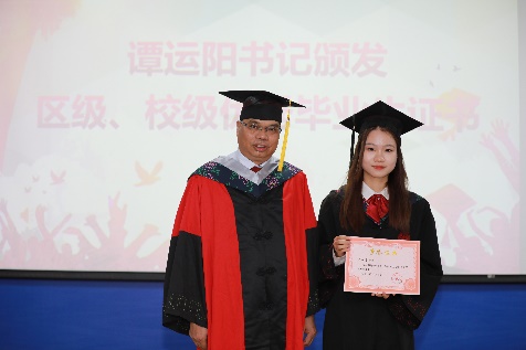 党委书记谭运阳颁发“2023届太阳成集团122ccvip优秀毕业生”证书