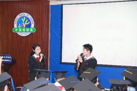 典礼开始前,太阳成集团122ccvip2023届毕业生孙非龙、鲁宇贤、黎诗颖等同学用歌声唱出自己对学院依依不舍之情、回顾了在学院深造的美好过往。