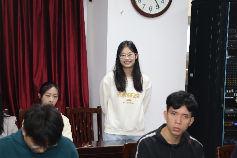 余海念向同学们讲述了他在澳大利亚的生活和学习经历、心得体会和见识见闻,介绍了他在澳大利亚以音乐学作为高校启蒙专业,再以医学专业作为个人发展的学习模式与方法。Naomi讲述了她从小接受家庭教育、大学学校教育的经历和心得。交流会上,同学们展现出了极大的热情和积极性,有的同学用流利的英语展示了自己的兴趣爱好、家乡特色,并就中澳学生的学习方式、学习心得、课程及专业实践、家庭教育方法、文化背景和习俗异同等进行了交流和问答,余海念和Naomi都一一给予详细的解答,并热情邀请到彼此的家乡作客。余海念和Naomi还为同学们表演了一首经典华尔兹歌剧作品选段,呈现了西方歌剧的历史故事,获得同学们热烈的掌声。最后,余海念和Naomi鼓励自己和同学们一起努力学习、突破自我、向更高更好的舞台不断迈进。座谈会诚挚的沟通加深了彼此的了解与友谊,让同学们深刻感受到了中澳两国大学生生活学习方式的差异和相似之处,拓宽了他们的眼界,锻炼了他们的跨语言交流能力。