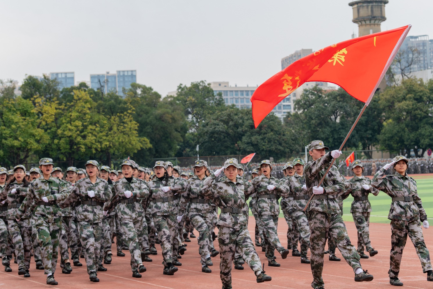 两周的军训中,同学们迎接的时而是南宁初冬的小雨,时而是暖阳的照耀,转瞬又是南方的个位数寒冬。无论是未干又被汗水打湿的军训鞋服、还是一层又一层的保暖棉服,迷彩帽下的严肃表情和拉歌时的欢快成了他们靓丽而又青春的风景线。操场上有教官们的悉心指导,有同学们的认真领悟,他们踏着铿锵有力的整齐步伐,呐喊着嘹亮高亢的行军口号,彰显着海院学子的壮志豪情。他们之中,有5名同学参加了战术表演,4名同学参加了匕首操表演。日复一日的刻苦练习换来的是阅兵场上的欢呼和掌声,以及荣光。