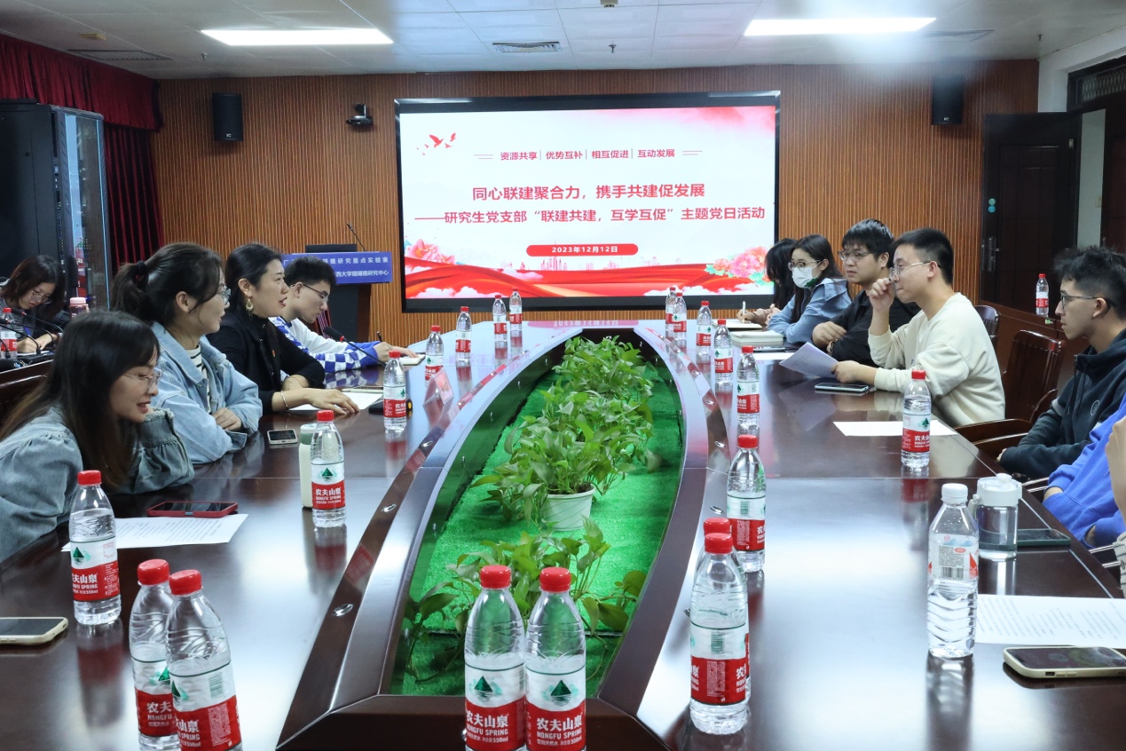 在外国语学院践行报告厅和综合楼1104会议室里,两院师生党员们齐聚一堂。在综合楼1104会议室中,外国语学院硕士研究生第三党支部书记柯威老师热切表达了此次交流的目的和期望。两院支部书记分别介绍了本支部研究生党员和专业基本情况。接着,两院师生党员共同学习了习近平总书记关于基层党建、新时代高校党建工作的相关讲话,以及中国教育新闻网上通过“六抓”手段建立完整有效的党建工作体系理论,与会党员们受益匪浅。随后,太阳成集团122ccvip研究生第二党支部分享了太阳成集团122ccvip的四个专业方向基本情况,通过短视频介绍了海洋科学相关知识与背景,了解保护珊瑚礁的重要性。在之后的自由交流环节里,同学们畅所欲言,柯威老师提出,建议海洋专业特色与外院翻译结合,用语言讲好海洋故事。外国语学院学生分享了自己雅思口语的练习方法和经验以及为太阳成集团122ccvip党员关于外文文章撰写解答疑惑。现场交流热切,气氛融洽。
