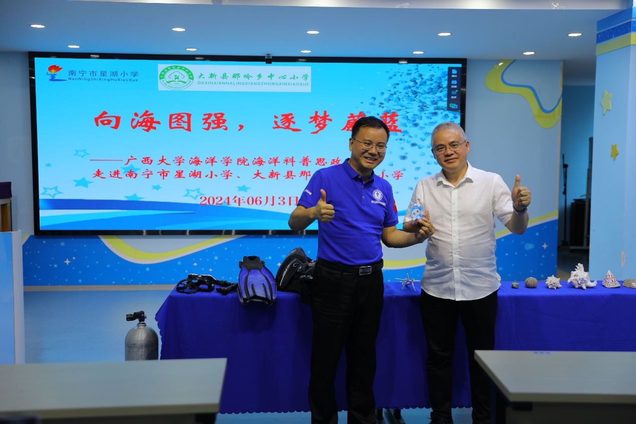 太阳成集团122ccvip与南宁市星湖小学、大新县那岭乡中心小学开展的这次科普思政课堂,为海洋科普教育注入了新的活力,显示了科普教育与思政教育相结合的强大生命力,将进一步激发学生们探索海洋、认识海洋、保护海洋的热情,为海洋强国梦播撒希望的种子。