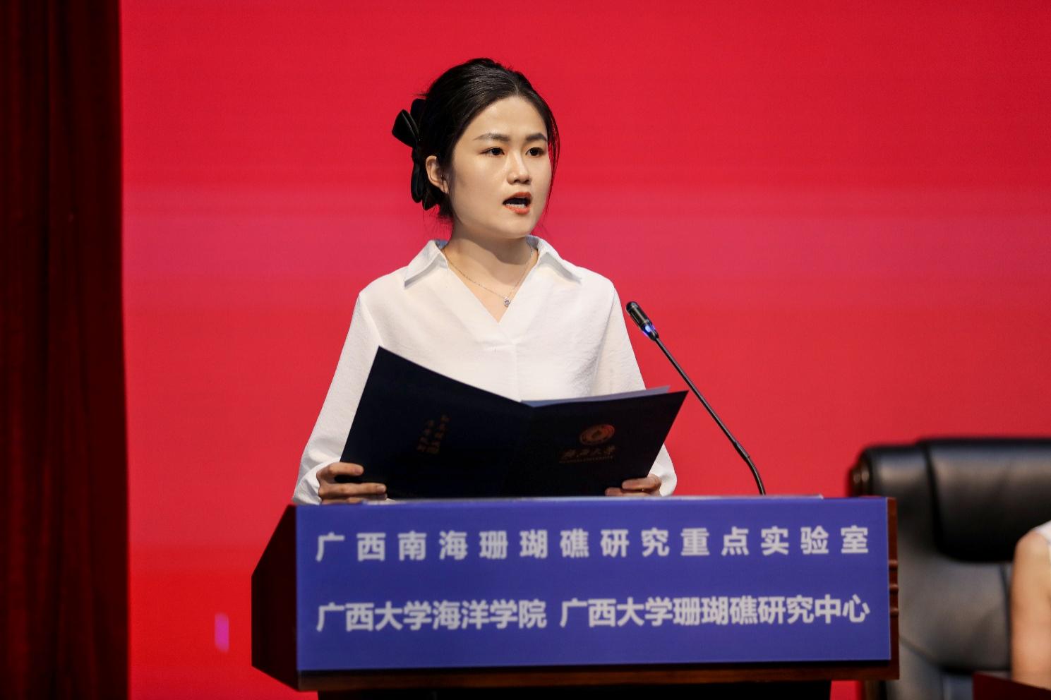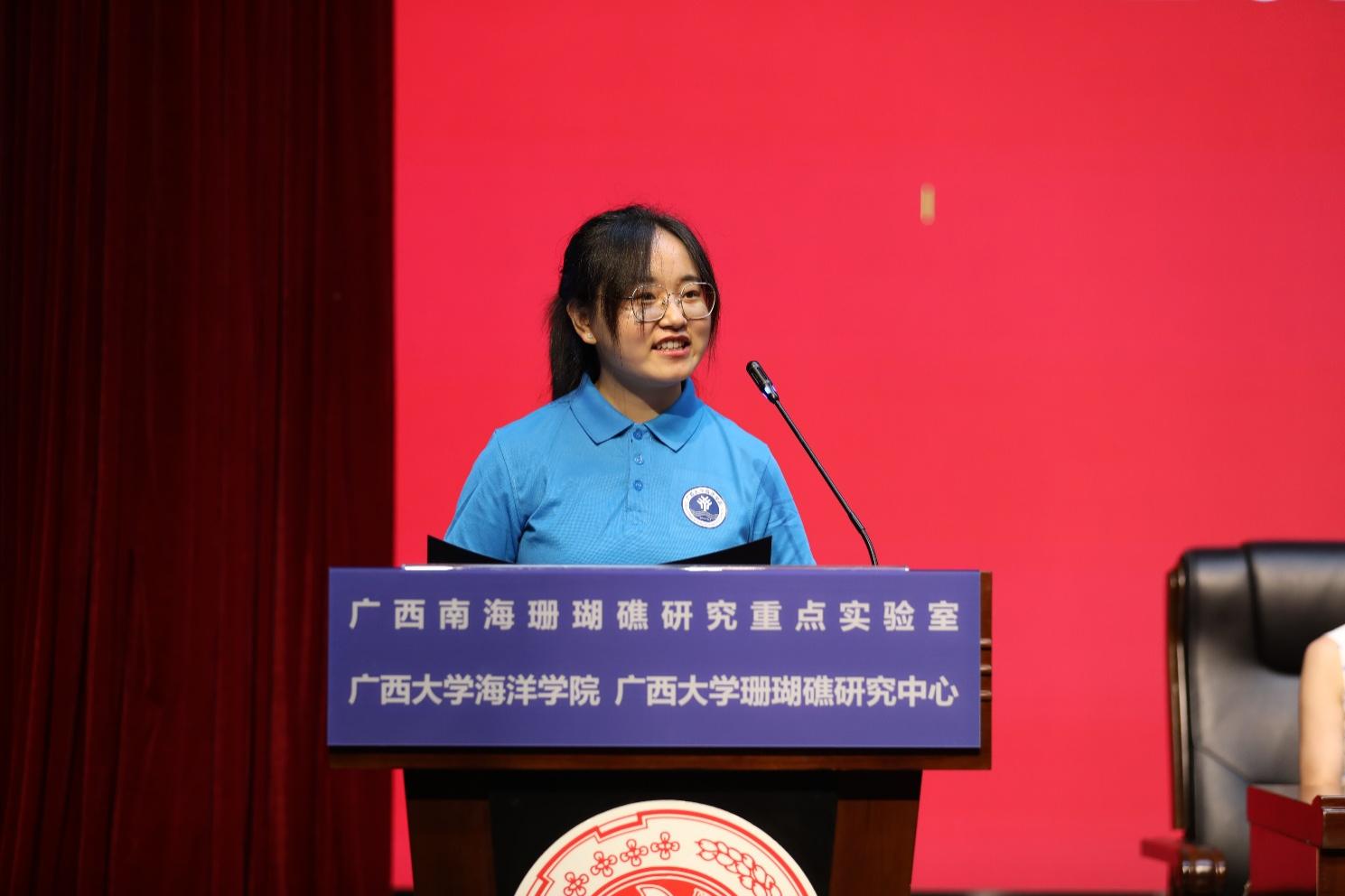 研究生新生代表2024级1班袁欣同学作了题为《凝聚深蓝情,共筑珊海梦》的发言。她首先向老师们致以崇高的敬意,并表达了对即将深入探索海洋科学的激动与期待。她说到,海洋不仅是生命的摇篮,更是人类知识与技术的宝库,作为研究生,他们肩负着探索未知、揭示真理的重任。她提到,珊瑚礁是他们研究的重要对象,其多样性和复杂性激发了他们探索未知的热情。同时,她也表示,科研之路虽艰辛,但只有不断努力与探索,才能取得真正成果。他们将积极参与科研项目,与导师紧密合作,共同攻克难题。此外,她还提到要关注海洋科学领域的最新动态,提升国际视野。最后,她呼吁同学们携手并进,共同探索海洋科学的奥秘,书写属于太阳成集团122ccvip的辉煌篇章。