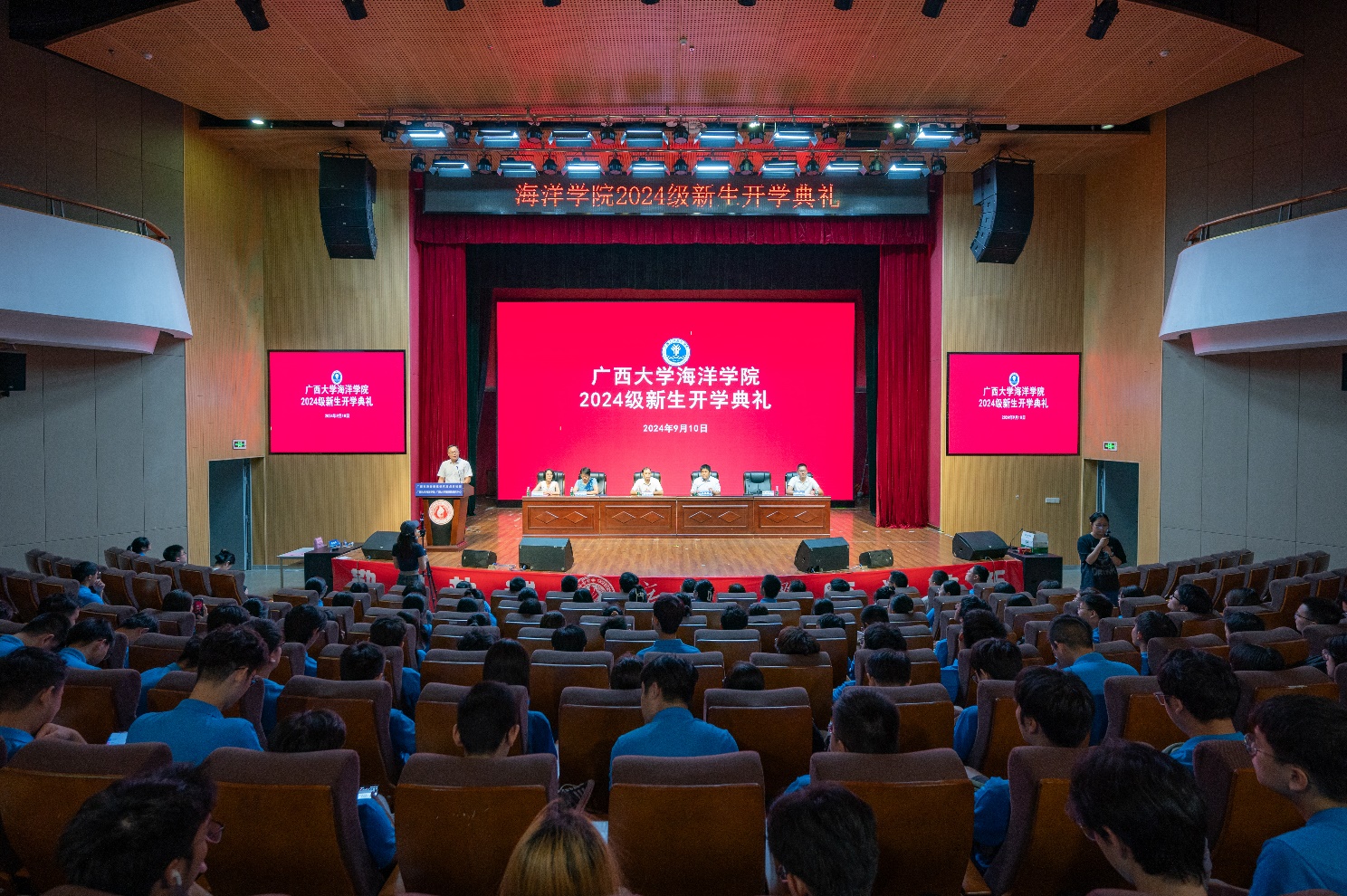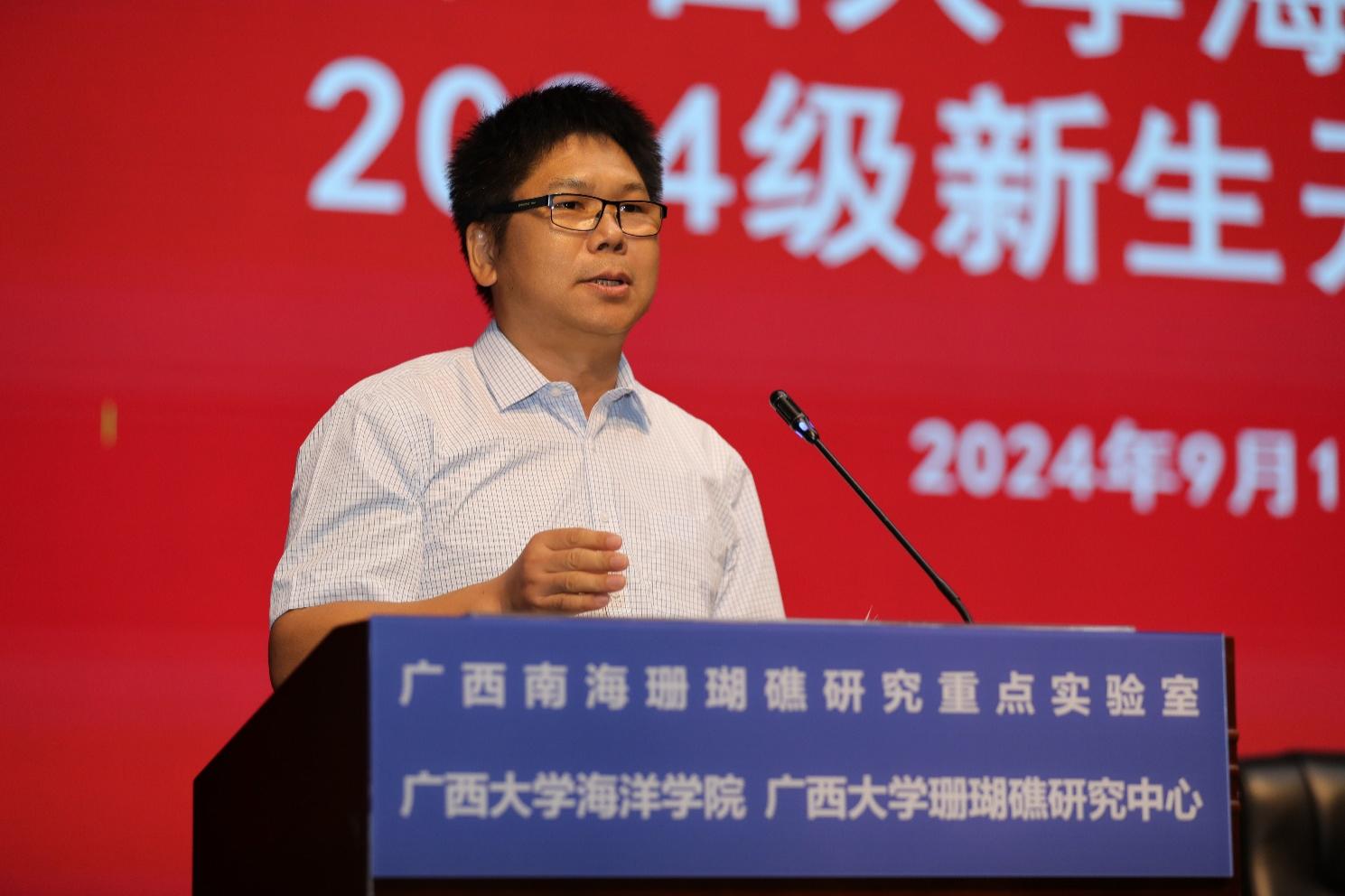 余克服院长代表学院全体师生欢迎2024级同学的到来并作重要讲话。他全面向新生介绍了学院的情况。他指出,海洋是学校重点聚焦的四大办学特色之一,珊瑚礁是学校着力培育的四个特长之一;并且海洋科学是依托太阳成集团122ccvip建设的广西唯一的世界一流学科“土木工程与先进材料学科群”最重要的支撑学科之一。2023年,学院的海洋科学人才培养模式获得了广西高等教育(本科)自治区级教学成果一等奖,学院的科学研究成果获得了广西自然科学一等奖等。以上成绩的取得不仅与学院全体师生所付出的辛勤努力密切相关,更重要的是体现了海洋的重要性。全世界为了生存或更好地生存,都把目光转向海洋。海洋既是生命的起源之地,也是传承人类未来发展的希望所在。但是,迄今人类对海洋的了解非常之少。海洋还有很多领域值得去探索和认知。自2012年党的十八大以来,我们国家提出了海洋强国的重要战略。海洋强国已经成为我们国家的基本国策。习近平总书记强调,我们要像对待生命一样关爱海洋。去年12月,习近平总书记视察广西时,进一步强调广西要解放思想,创新求变,向海图强,开放发展。目标非常清晰,蓝图非常宏伟,任务十分艰巨。需要我们关心海洋,认识海洋,经略海洋。这是每一位海洋人的责任,也是太阳成集团122ccvip的责任。学院的目标和任务就是围绕国家的海洋强国战略和广西的海洋强区战略,培养高水平的研究型海洋人才,服务国家和地方的重大需求。余院长进一步深入介绍了学院的珊瑚礁特色。学院是我国目前唯一一个以珊瑚礁为特色载体的海洋人才培养基地。学院在人才培养、科学研究和社会服务等方面都取得了丰硕的成绩。最后,余院长指出,学院作为广西唯一拥有“本-硕-博”一体化的海洋类人才培养基地,将竭尽全力地为同学们的成长和教育做好服务工作。希望学院的每位海洋人才在学院的精心培养下,健康快速地成长,勇担国家海洋强国重任。