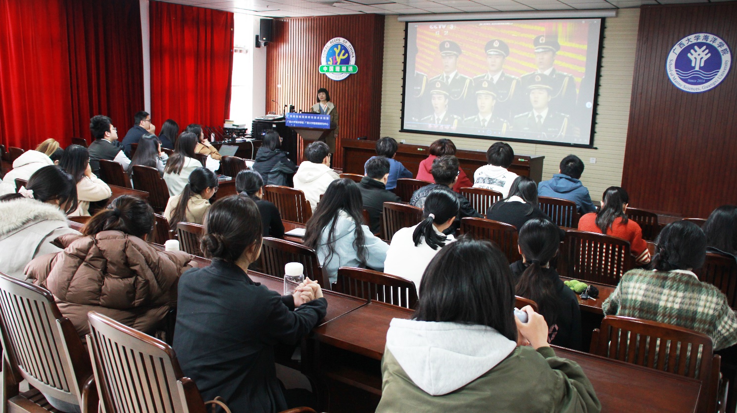为深入推进传承红色基因,筑牢海洋强国梦想。3月18日下午,学院在西215教室举办了主题为“唱响红色歌谣,铸就红色育人”的“开学第一课” 专题讲座。本次讲座特邀我校艺术学院音乐系覃思教授主讲,太阳成集团122ccvip王瑞副院长主持。学院学生党员及学生干部约60人聆听了此次讲座。本次讲座通过红色歌谣传递爱国情报国志,激发学生爱国情怀,并结合海洋学科特色,激励学生投身海洋强国建设。