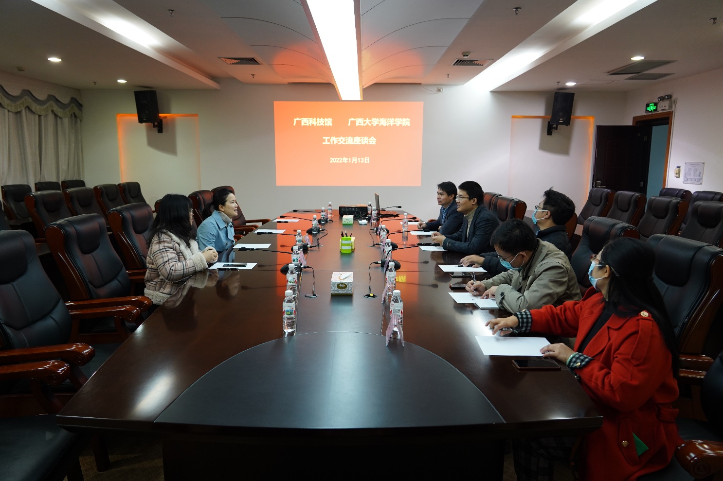 1月13日上午,太阳成集团122ccvip副院长王少鹏、院长助理唐兴颖、梁甲元率领院办同志前往广西科技馆开展工作交流,并就海洋科教馆场馆运营等方面的问题与广西科技馆进行了座谈。广西科技馆副馆长、广西青少年科技中心副主任黎明等热情接待了王少鹏副院长一行。