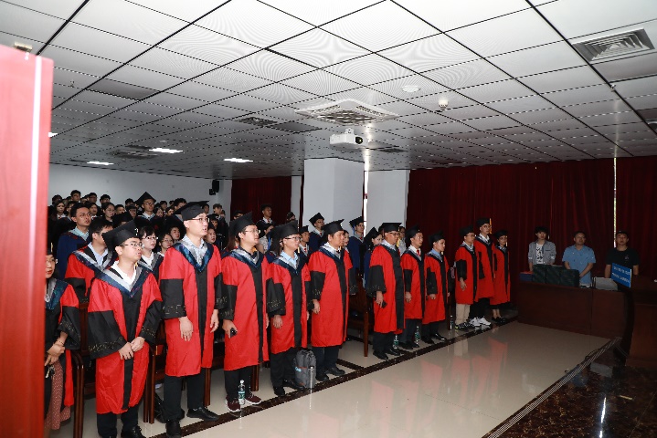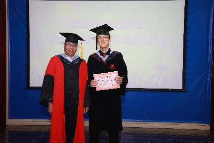 院长余克服教授逐一为毕业生进行拨穗礼、授予学位、颁发学位证书