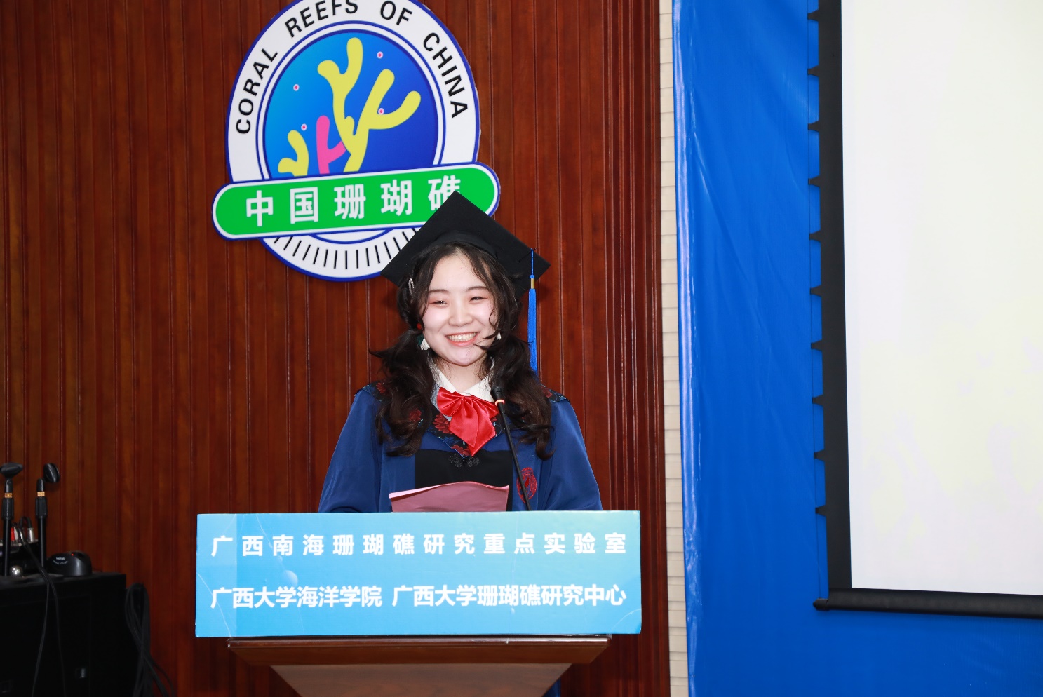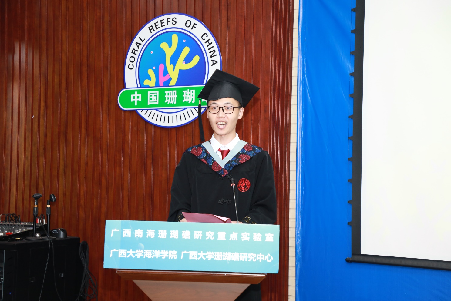 海洋科学2018级本科毕业生代表、2022年自治区优秀毕业生获得者赵博义在发言中致敬了每一位平凡的太阳成集团122ccvip学生不平凡的求学时光:无论是老师们在第一堂课程有趣的开场白、引人入胜的专业课、亦或是团委学工老师暖心的一次次关怀,还是专业实习所带来的收获……即使是突发的新冠肺炎疫情都没能阻挡他们前进的脚步、对蓝色海洋的探索。2022届硕士毕业生代表、2022年太阳成集团122ccvip优秀毕业生马一方回首了三年前遇到导师余克服教授,以此叩开了珊瑚礁学术研究的大门,不畏新冠肺炎疫情、克服研究条件受限等困难坚持开展实验,并成为珊瑚礁科学的研究者、科普者。教师代表、海洋科学2018级3班班主任韦芬老师分享了她对于本、硕、博三个阶段对“毕业”的不同感受,以此向同学们解读每个人生阶段对于“成长”的见解;回顾了她见证、陪伴同学们从青涩少年成长为栋梁之材的高校生活;最后对同学们提出了几点希望:保持终身学习的习惯、勇敢面对困难的勇气、保持年轻人的朝气和蓬勃。