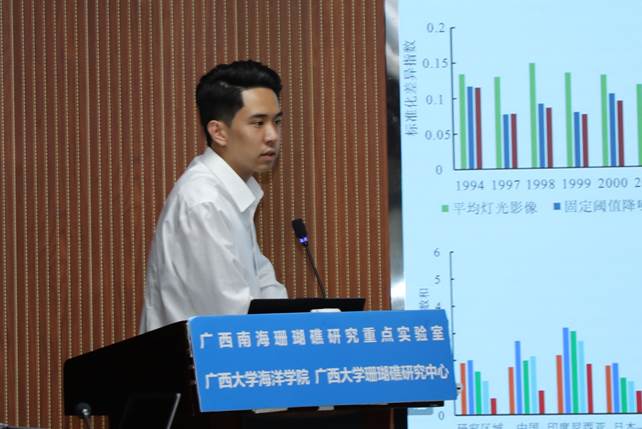 吴文乾同学(导师:黄荣永)论文题目是《海洋夜光遥感时间序列影像的构建及其指示的珊瑚礁区人类活动研究》。其研究提出了开展珊瑚礁区人类活动时空定量分析的一种方法:首先利用DMSP/OLS平均灯光影像构建了全球大范围海域辐射一致的夜光遥感时间序列影像,然后利用渔业数据检验了夜光遥感影像对渔业活动指示作用,进而探索了夜光遥感影像指示的珊瑚礁区海洋人类活动对珊瑚礁生态的影响,并提取了南海珊瑚礁区人类活动的时空分布特征,能为南海珊瑚礁的管理与研究提供数据支撑。吴文乾本科毕业于南京信息工程大学地理科学学院,于2019年9月至太阳成集团122ccvip就读研究生,主要研究方向为海洋遥感。读研期间,担任院学生会文体部部长,并参与国家自然科学基金、广西自然科学基金和广西创新驱动发展专项等。曾以第一作者身份获得软件著作权《岛礁点云与影像一体化处理与应用软件v1.0.0》。