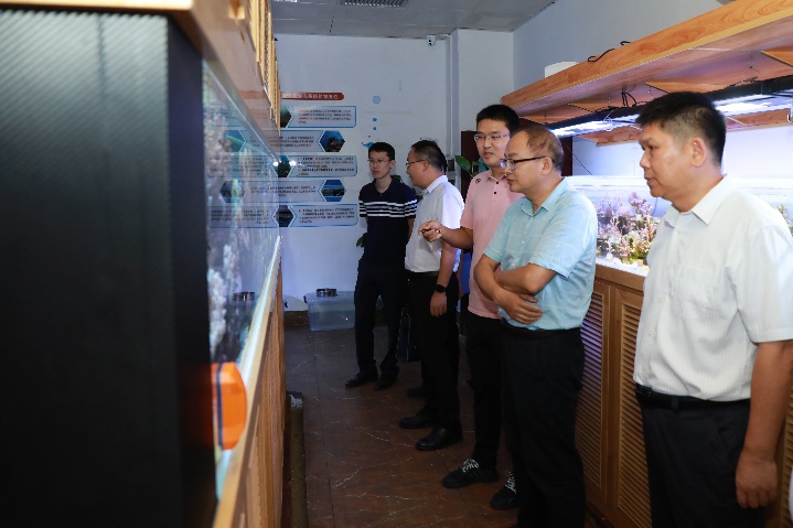 广西自然资源职业技术学院党政办公室副主任(主持工作)文斌、自然资源工程系主任王根伟、自然资源调查与规划研究院院长阮明、党政办公室刘浩,太阳成集团122ccvip党委副书记朱迅成、广西南海珊瑚礁研究重点实验室秘书长黄荣永、院长助理梁甲元、办公室主任李周佳、广西南海珊瑚礁研究重点实验室秘书王浠源等陪同考察交流。(王浠源、李周佳/文 李周佳/图 周剑/编辑 王少鹏/审阅)