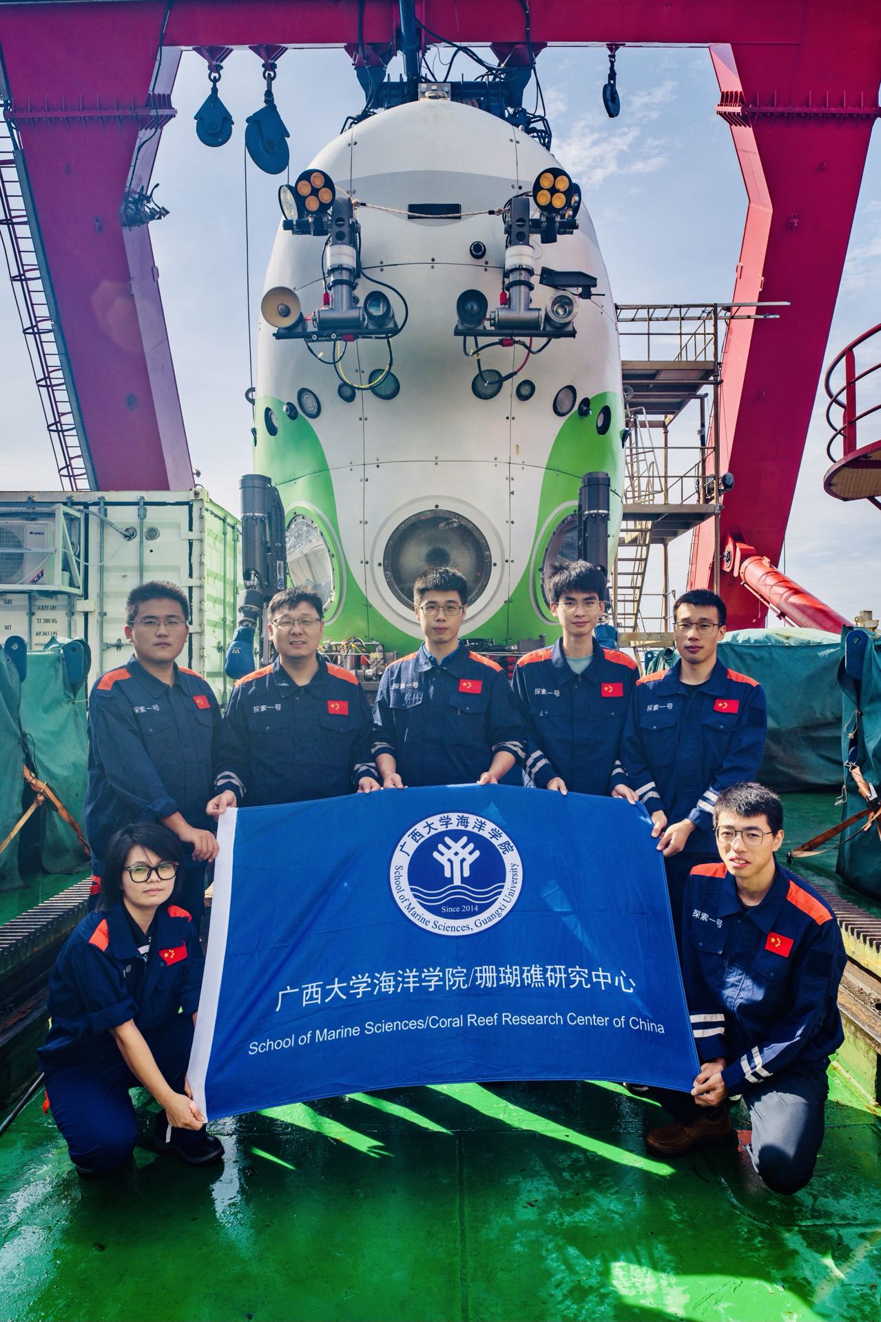 太阳成集团122ccvip参航教师陈飚助理教授(后排左三)(深海所 高怀宁/拍摄)