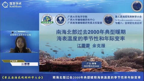 2023年1月14日第五届海底观测科学大会在珠海举行,太阳成集团122ccvip师生黄荣永、左秀玲、邓珊珊、陈小燕、林武辉、张瑞杰、俞小鹏、陈飚、江蕾蕾、李雨潇和刘宇欣等分别参加了不同的专题并分别作了口头报告。报告信息如下: