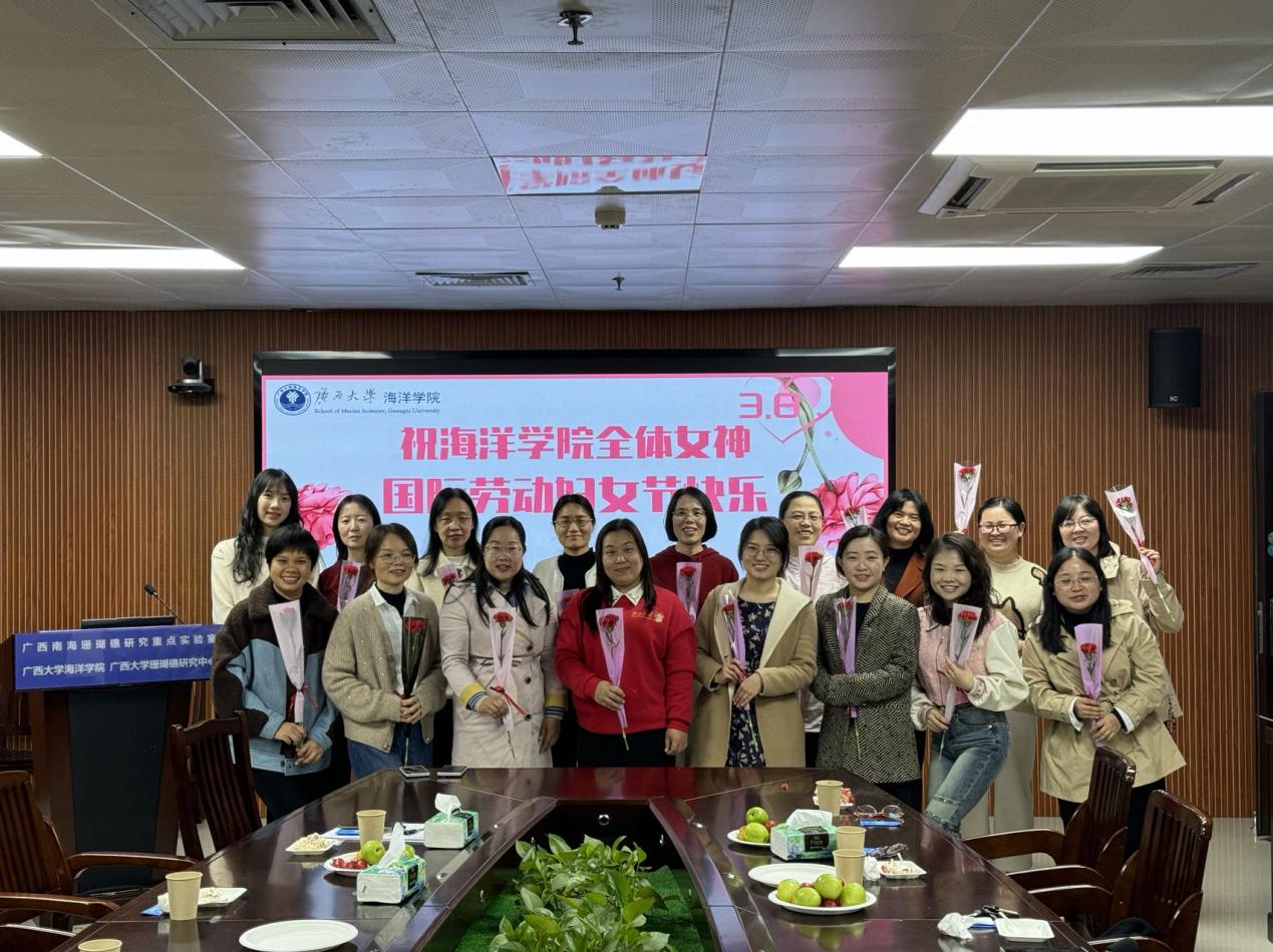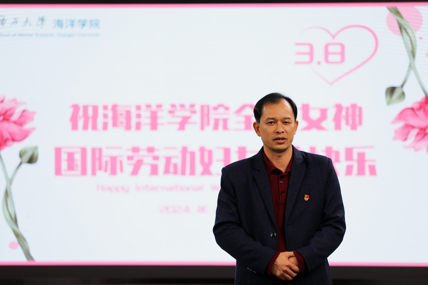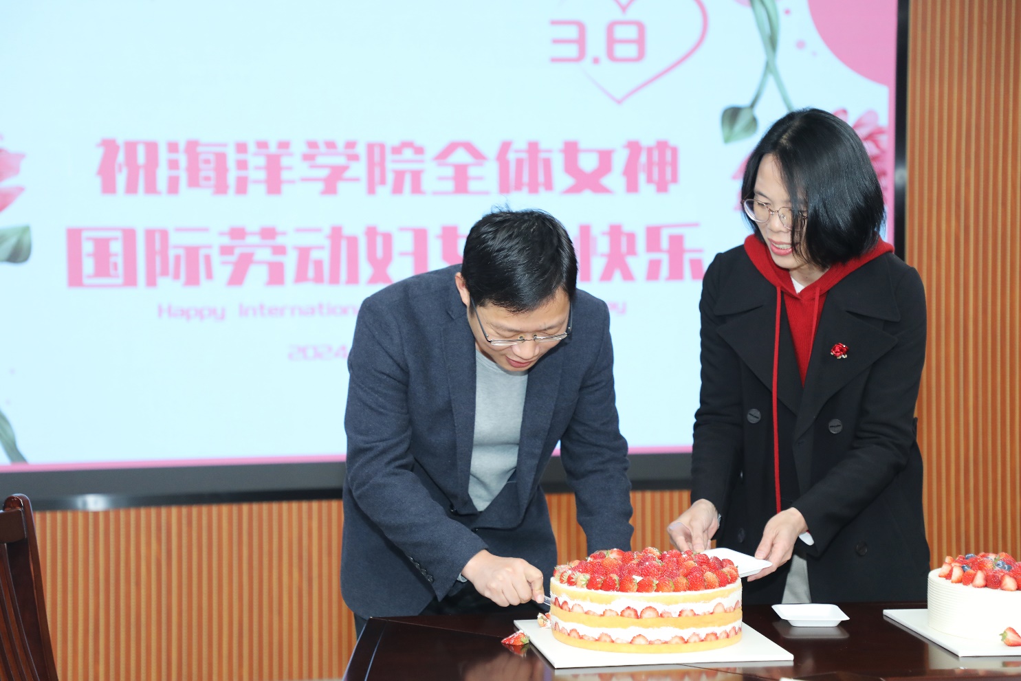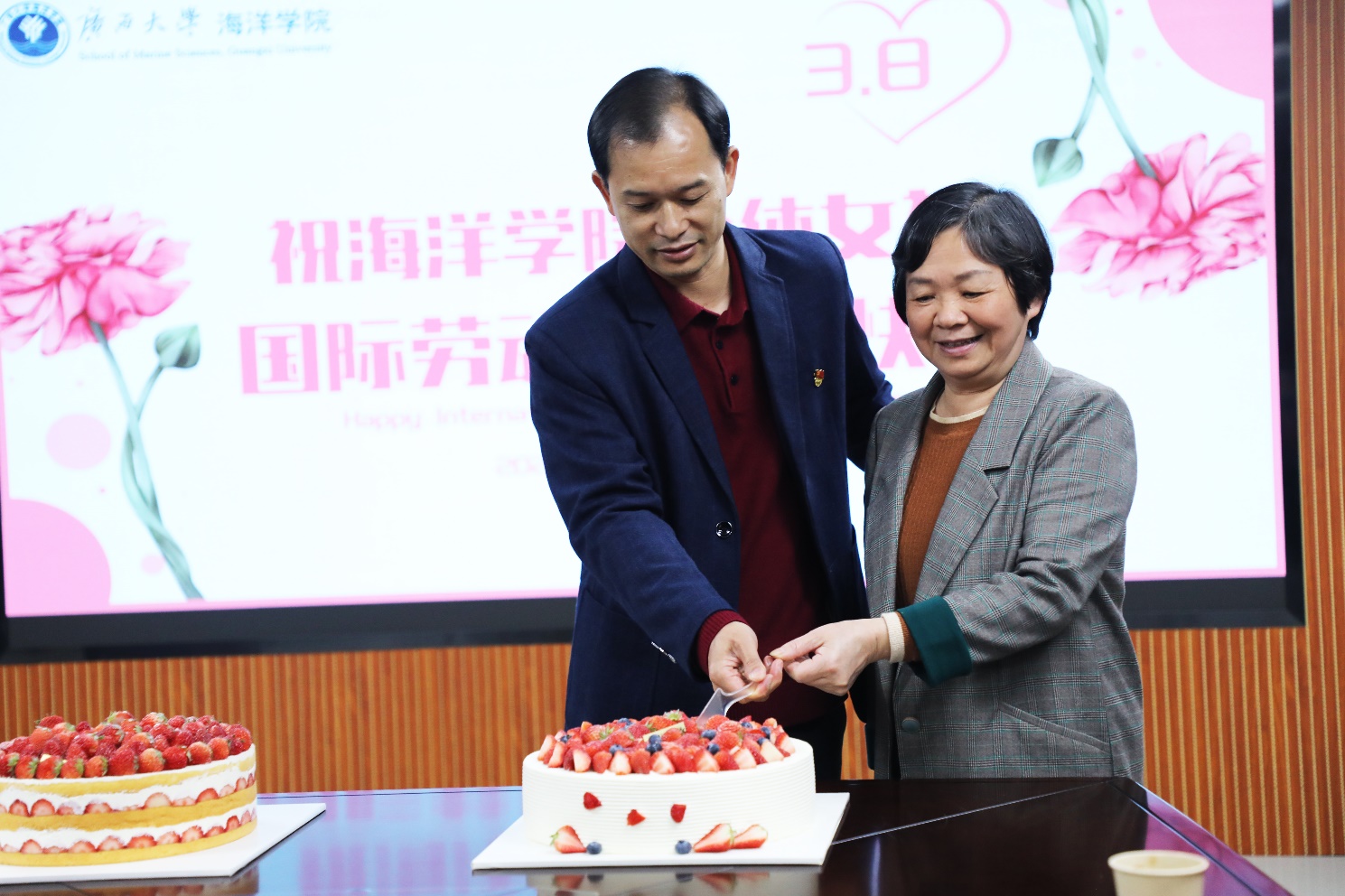 活动伊始,潘柳燕教授和秦华东书记、刘旗扬主席与福利委员潘长桂共同切蛋糕,向学院全体女教职工送上诚挚的祝福。