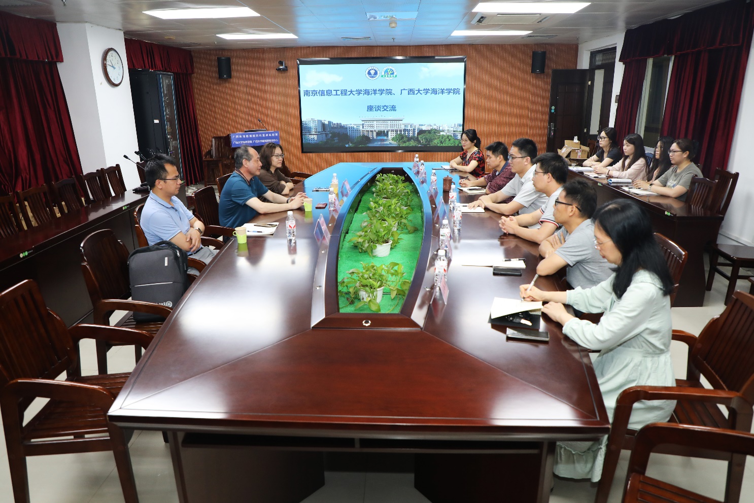 在交流会上,双方首先就党建工作进行了深入交流。陈相勤书记强调了党建工作在学院发展中的引领作用,分享了南京信息工程大学海洋科学学院在党的建设方面的成功经验和做法。他表示,希望两院能够进一步加强党建交流,共同提升党建工作水平,为学院的全面发展提供坚强的政治保证。随后,双方围绕支部建设、学位点建设、学科和专业发展、科研合作、本科教育教学、师资队伍建设、优质研究生生源地建设等方面进行了广泛而深入的探讨。双方表示,将搭建共享平台,不断拓展合作的深度与广度,实现共赢发展。
