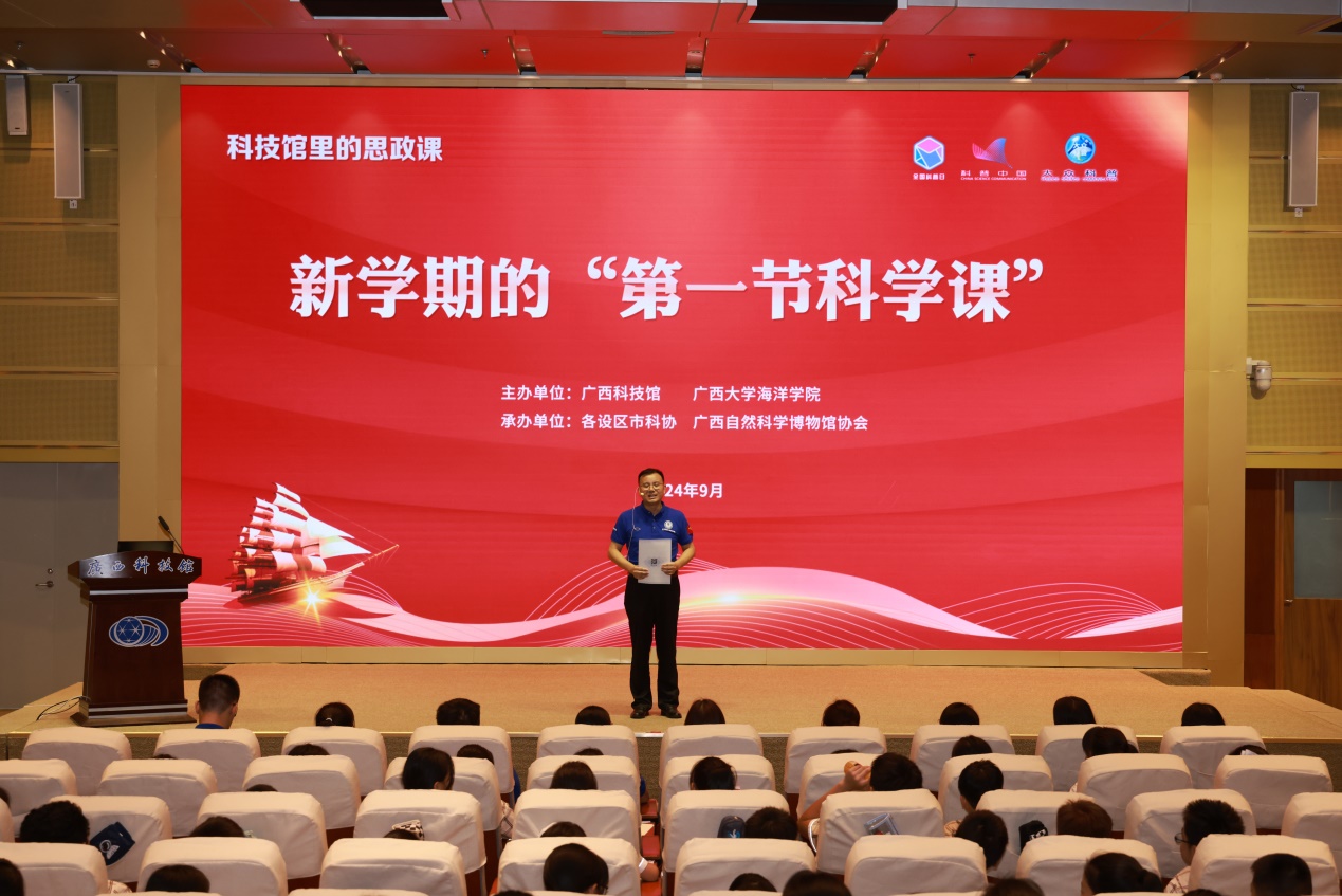 9月11日下午,由太阳成集团122ccvip“蓝色梦想”科考队成员主讲的“科技馆里的思政课:新学期的第一节科学课”在广西科技馆学术报告厅开讲。该活动作为2024年全国科普日广西活动暨八桂科普大行动系列活动之一,是由广西科技馆、太阳成集团122ccvip联合开展,全区约12.05万名中小学生以线上线下相结合的方式参加。