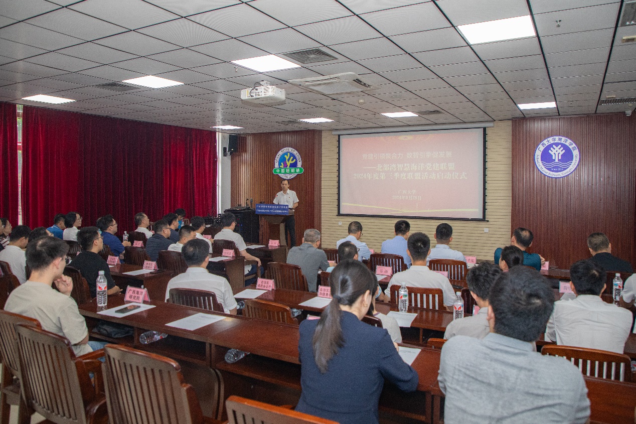 9月28日,由自治区港航发展中心主办、学院党委承办,以“党建引领聚合力 数智引擎促发展”为主题的北部湾智慧海洋党建联盟2024年度第三季度联盟活动在学院举行。校党委常委、副校长宁旭初、自然资源部第四海洋研究所副所长兼总工程师徐兴永出席并致辞。广西海事局党组成员、纪检组长罗华等来自北部湾智慧海洋党建联盟26家单位60余名海洋专家学者和工作者参加活动。学院党委书记秦华东主持活动。