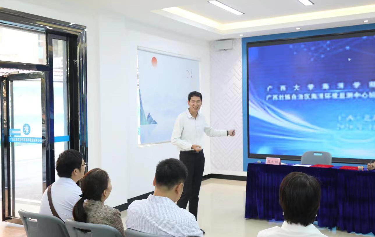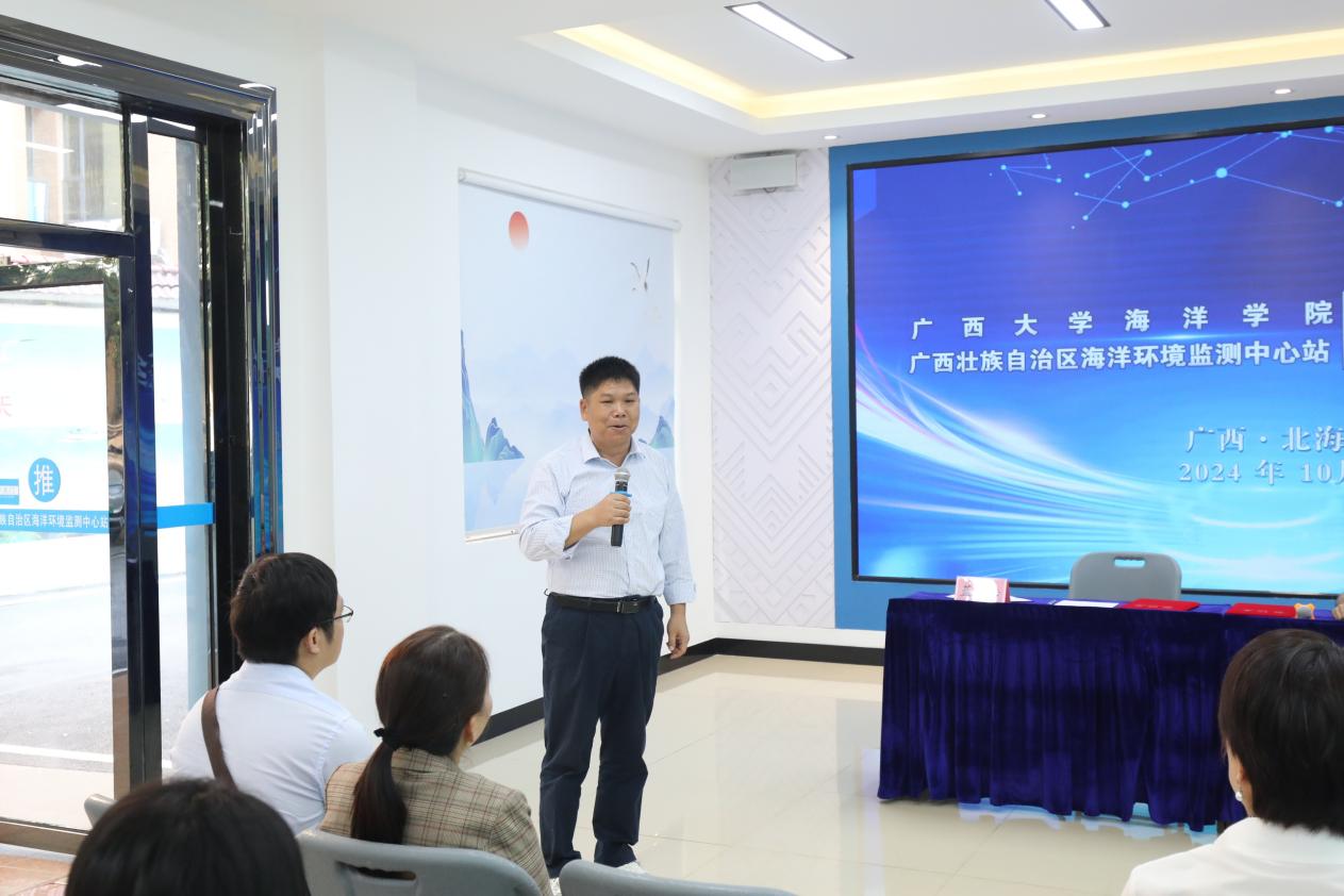 学院学术带头人徐向荣教授,党委副书记黄学勇,海洋环境与化学教研室主任张瑞杰副教授、潘长桂副教授,广西壮族自治区海洋环境监测中心站业务科室中层以上干部、博士出席了本次签约揭牌活动。