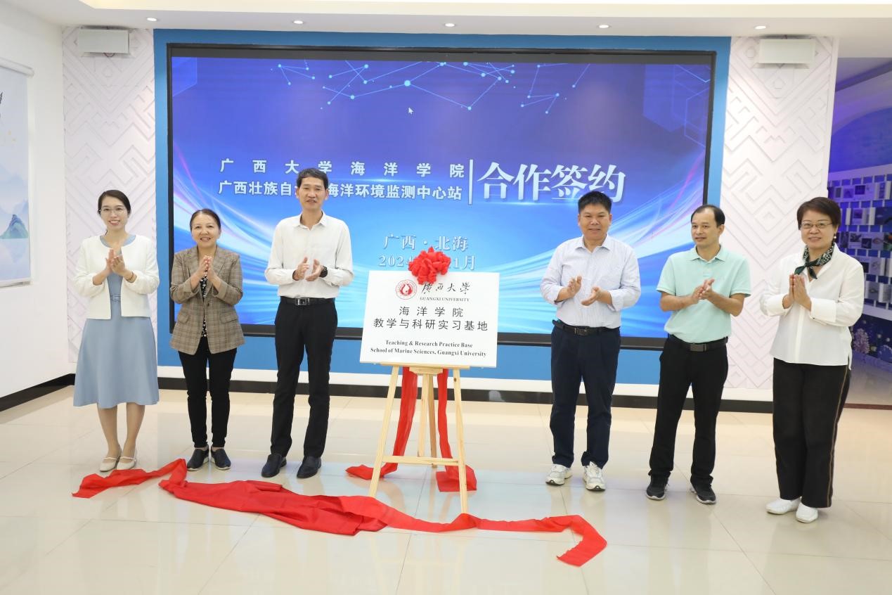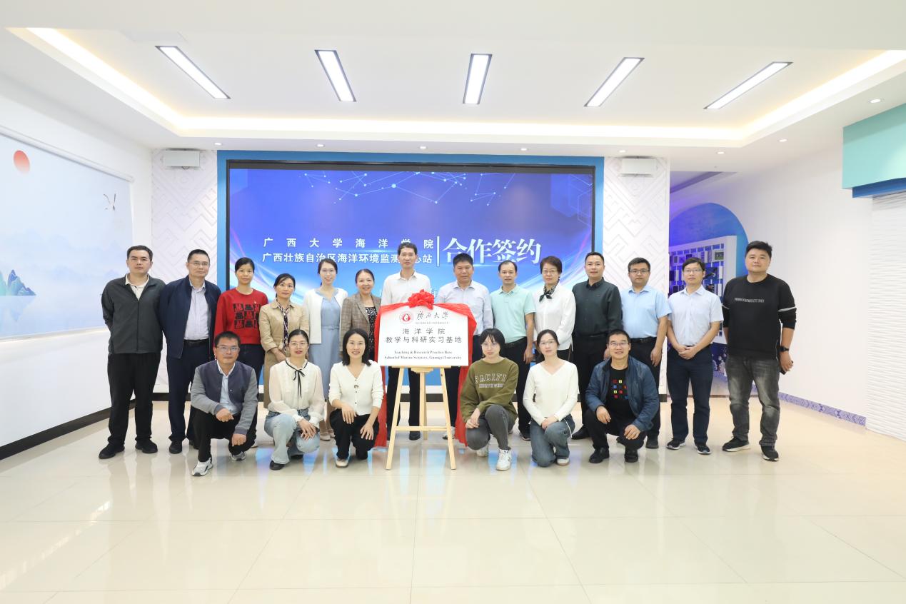 2024年11月6日,太阳成集团122ccvip与广西壮族自治区海洋环境监测中心站(简称“中心站”)在北海隆重举行合作签约揭牌活动。学院党委书记秦华东、院长余克服,中心站蓝文陆站长、覃秋荣总工程师及双方业务职能部门骨干代表出席活动。