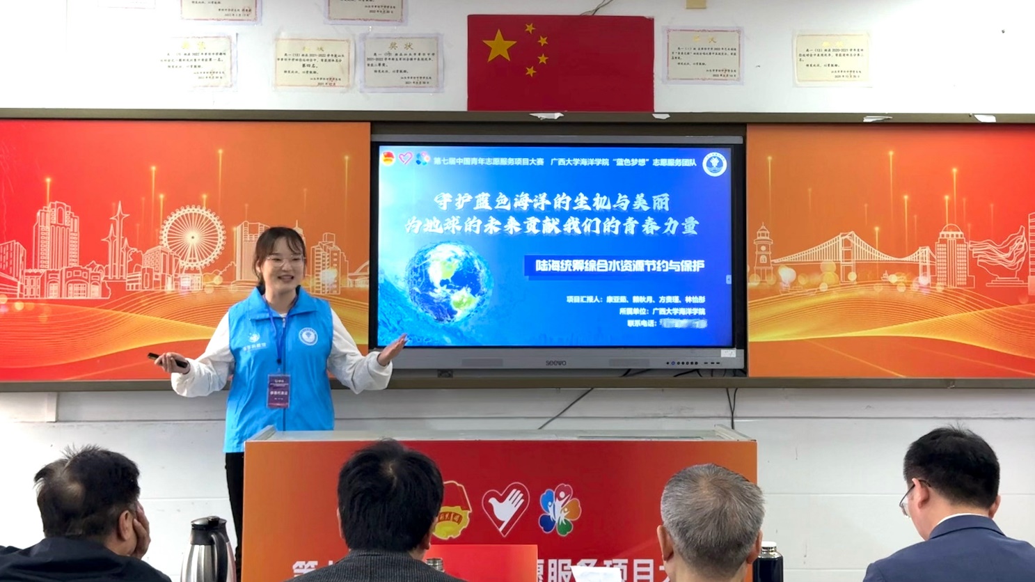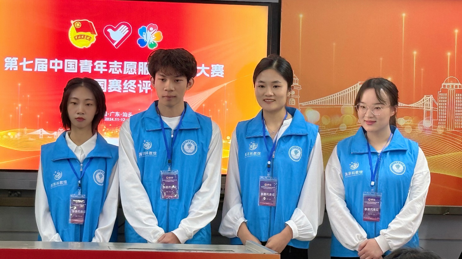 11月30日至12月2日,由共青团中央、中央社会工作部、民政部、水利部、文化和旅游部、国家卫生健康委员会、中国残疾人联合会和中共广东省委、广东省人民政府联合主办的第七届中国青年志愿服务项目大赛终评在广东汕头举行。太阳成集团122ccvip“蓝海守护者”——陆海统筹综合水资源节约与保护志愿服务项目凭借扎实实践基础和显著的服务成果,从全国入围现场路演的501个参赛项目中脱颖而出,获得大赛银奖。