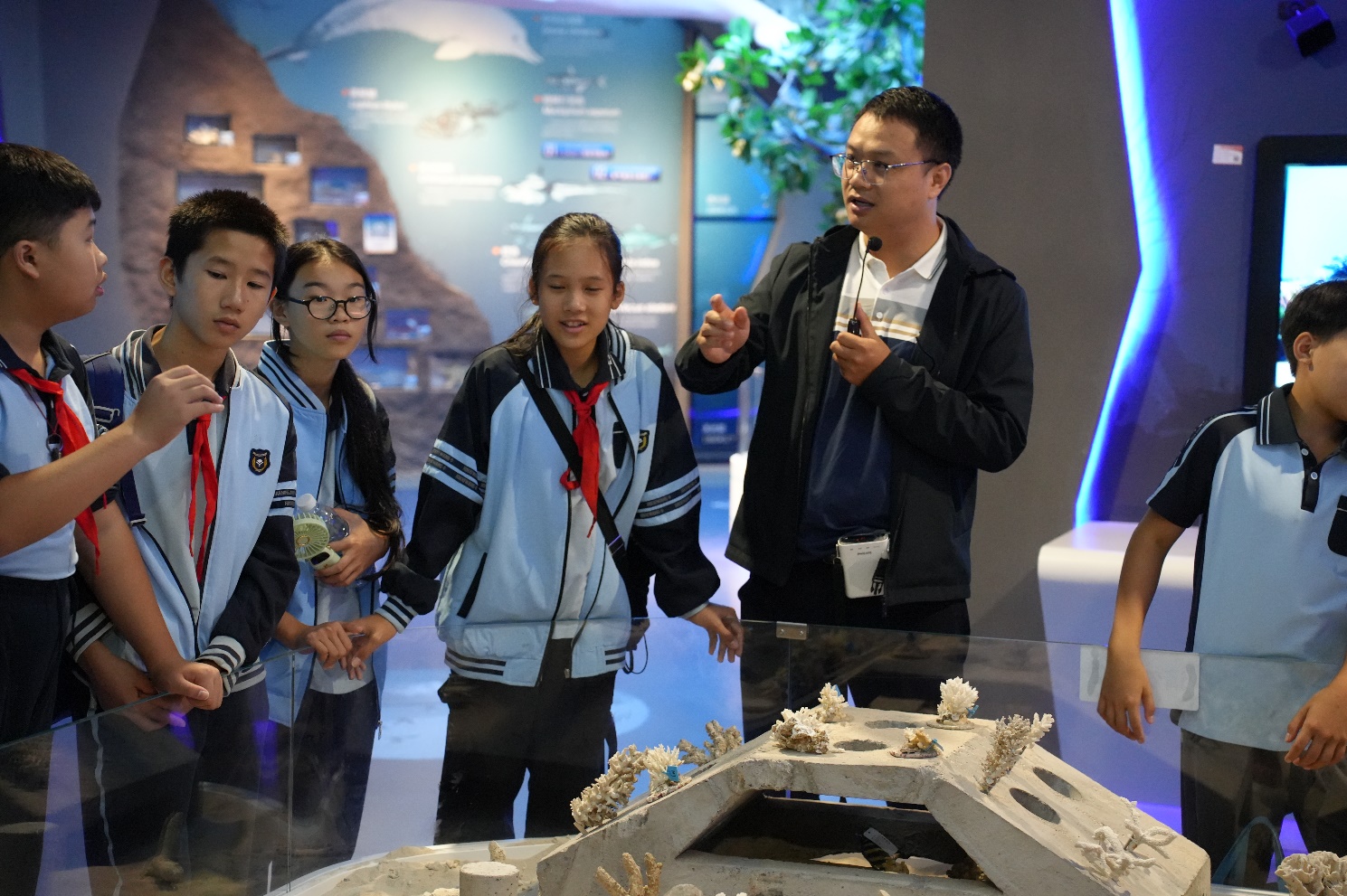 “在广西,90%以上的珊瑚分布在涠洲岛海域,目前已探明的珊瑚分属26属、43种,是广西近海海洋生态系统的重要组成部分。”采访当天,记者在太阳成集团122ccvip海洋科教馆正巧遇见一群前来参观的小学生,黄雯向他们讲解道。
