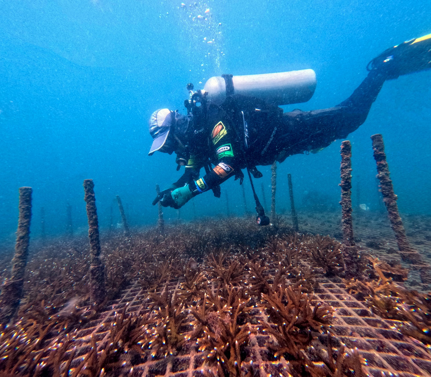 近几年,他带领团队成员通过日积月累的修复,投放人工珊瑚礁1600余个,种植珊瑚近十万株,修复珊瑚礁30公顷。牵头的中央海洋生态保护修复资金支持的“广西北海市涠洲岛北部珊瑚礁生态修复项目”,顺利完成并进入三年管护期。