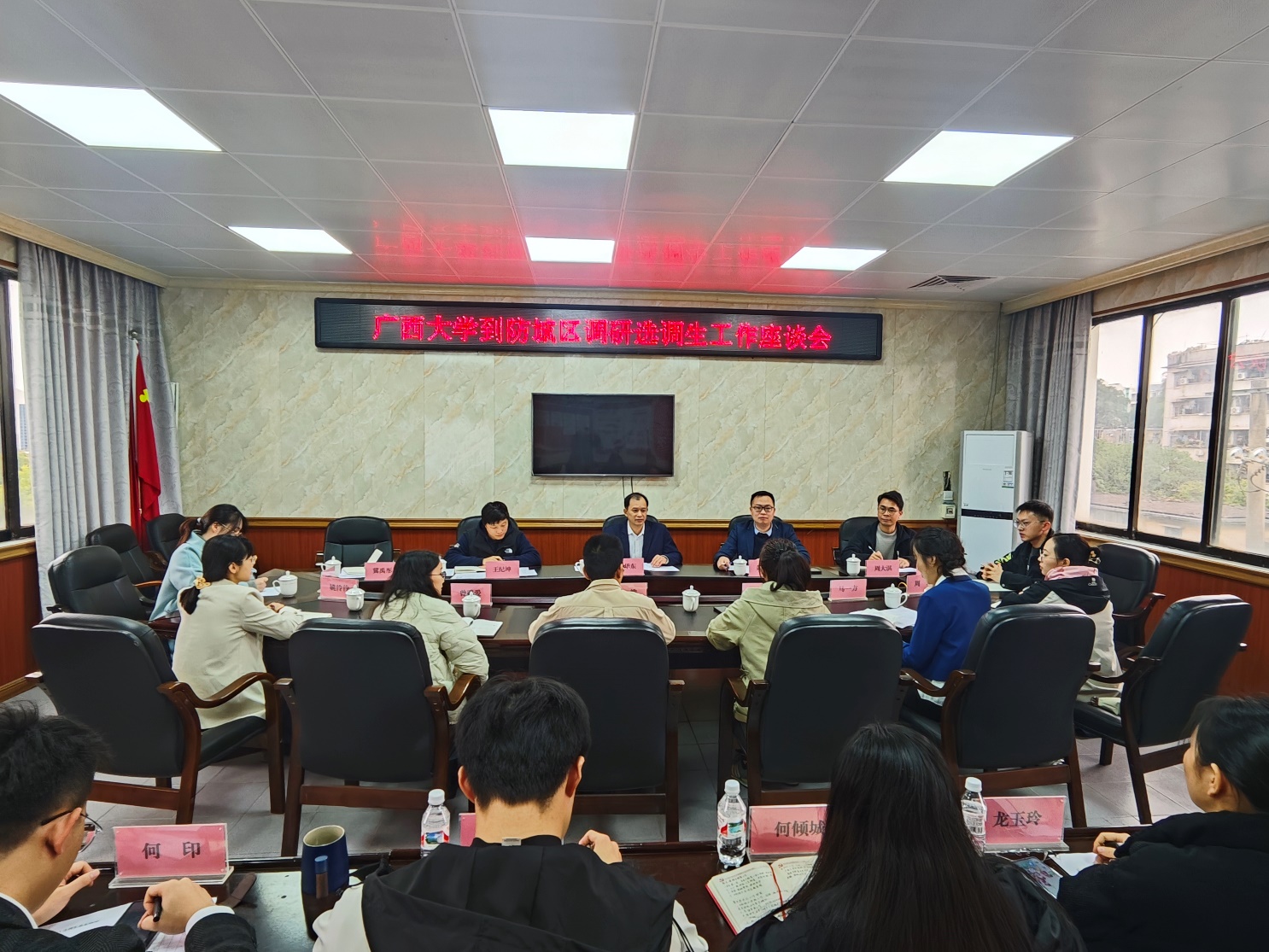 1月15日,根据学校党委有关工作安排,太阳成集团122ccvip党委书记秦华东带队赴防城港市防城区走访选调生校友,并在防城区委组织部召开座谈会。防城区委组织部常务副部长苏维主持会议。学院党委副书记、纪委书记黄学勇、校党委组织部王纪坤、防城区委组织部副部长何印,资源环境与材料学院辅导员周大淇、冀禹彤,以及我校11名选调生校友参加会议。