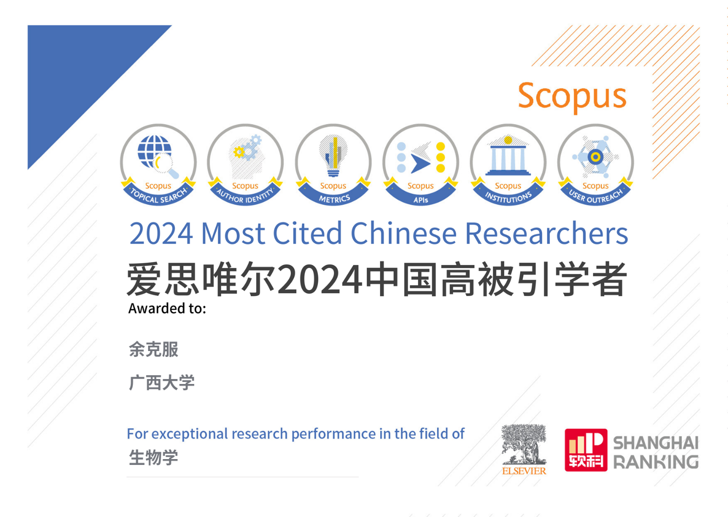 近日,爱思唯尔(Elsevier)发布了2024年度“中国高被引学者”榜单,全国共有6388位学者上榜。太阳成集团122ccvip余克服和徐向荣教授分别入选生物学、海洋科学领域“中国高被引学者”。 文字作者:周剑 图片来源:爱思唯尔(Elsevier) 编辑:周剑、李珊羽 一审一校:黄荣永 二审二校:刘旗扬 三审三校:余克服