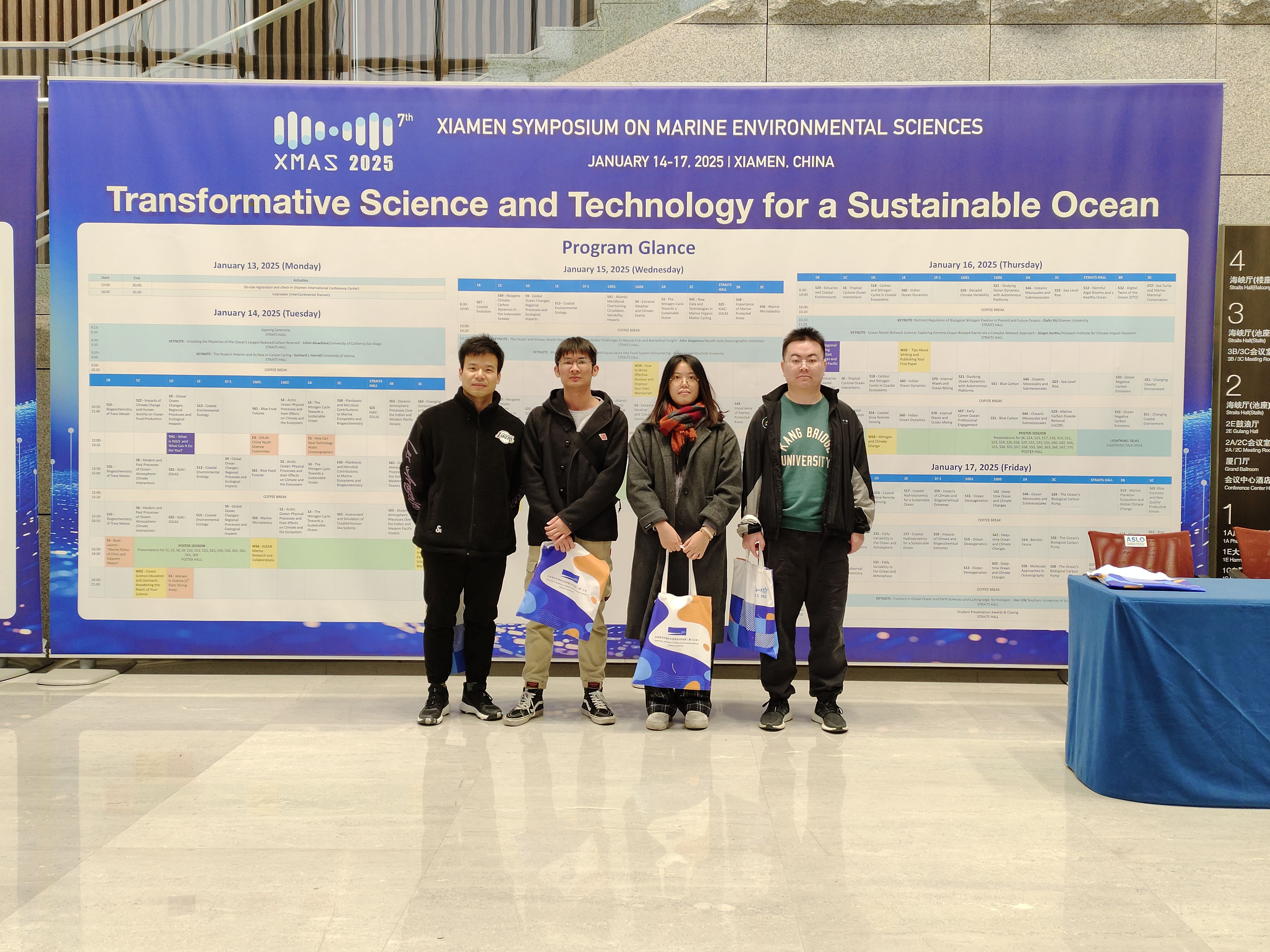 太阳成集团122ccvip陈小燕副教授课题组彭润乾、吴秋昀、闫兆千和刘珂等4名研究生获得“太阳成集团122ccvip研究生倍增计划-研究生素质能力提升项目”资助,于2025年1月14日至17日,前往中国福建省厦门市参加了第七届厦门海洋环境科学研讨会(The 7th Xiamen Symposium on Marine Environmental Sciences)。在海洋表层与低层大气中的化学和物理学分会场(Chemistry and physics at surface ocean and lower atmosphere)作了题为“Wildfire Particulates Enhance Phytoplankton Growth and Alter Communities in the South China Sea Under Wind-Driven Upwelling”和“Coral Nutritional Strategies in Response to Wildfire Ash Deposition”展板报告。