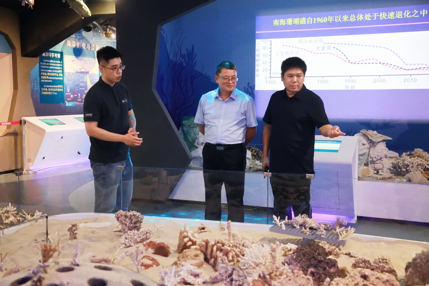 报告结束后,周文能教授先后听取太阳成集团122ccvip涠洲岛台站、三沙永乐龙洞台站及广西南海珊瑚礁研究重点实验室等科研平台的工作汇报,实地考察了太阳成集团122ccvip岛礁生态修复实验室、太阳成集团122ccvip海洋科教馆等实验基地,并与学院团队开展了深入交流。