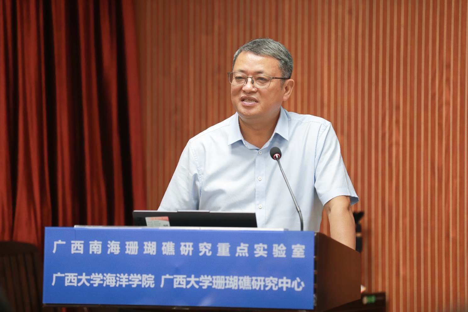 周文能教授以其在20世纪90年代末推动野外台站的调研与试点进程为主线,回顾了我国野外台站在几代科研工作者推动下的建设发展历程。他特别肯定广西野外台站建设成果,对太阳成集团122ccvip广西南海珊瑚礁研究重点实验室依托涠洲岛珊瑚馆野外台站,以“科研实践+科普创新”双轮驱动模式,推进北部湾生态修复项目,并斩获多项科研、教学和科普奖励与荣誉,给予了高度赞许。并表示,涠洲岛珊瑚馆野外台站作为南海珊瑚礁保护与生态修复的示范样本,将会持续为区域生态治理提供可复制的实践经验。