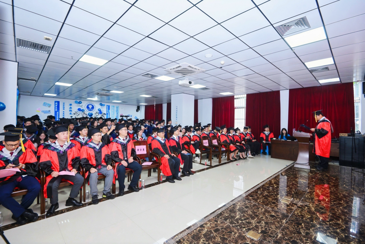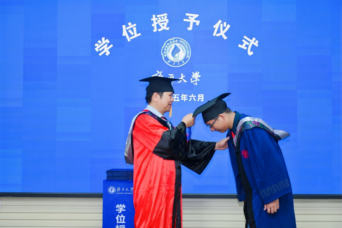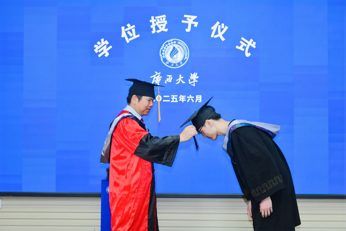 在最激动人心的学位授予环节,余克服院长逐一给毕业生进行拨穗礼、授予学位、颁发学位证书,并合影留念。