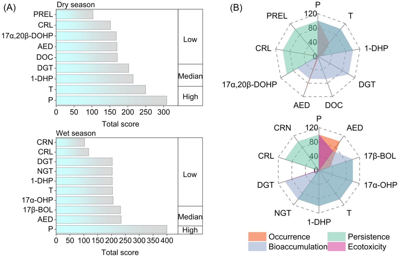 类固醇激素作为典型内分泌干扰物,其环境行为与生态风险已成为国际研究热点。九龙江口长期受到流域内城市化、农业面源和工业排放的复合污染压力,污染物负荷显著。但针对该区域类固醇激素污染的系统性风险评估和管理措施仍存在空白,亟需开展其时空分布特征解析及优先管控污染物识别等研究。