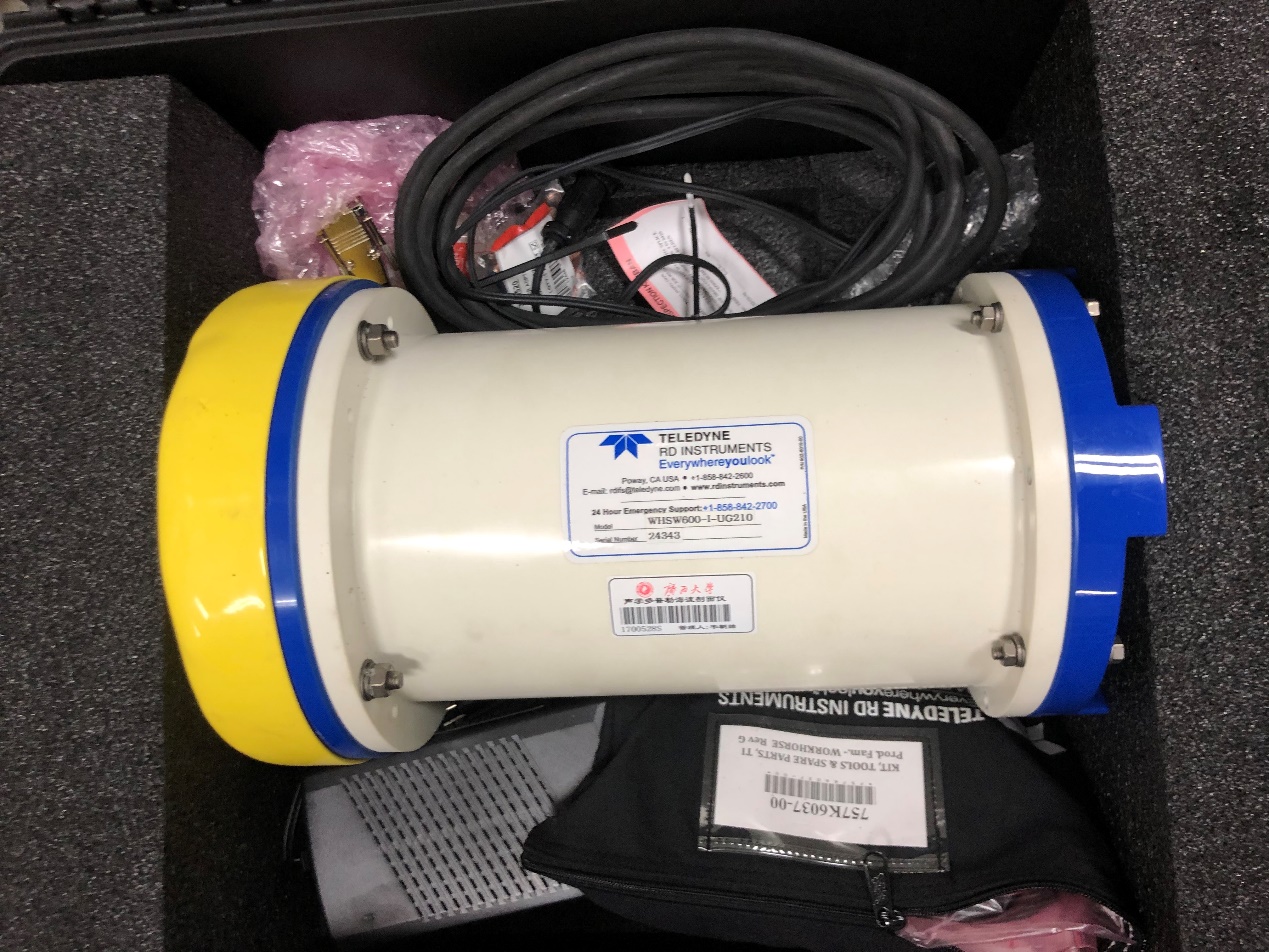 声学多普勒海流剖面仪(简称ADCP)是利用多普勒原理来测量水流流速的仪器,它设计有4个波束,将固定频率的声波发射出去,水流中的微小粒子会以水流的速度运动,由此产生多普勒频率漂移,根据多普勒原理计算出流速和流向的大小。可用于河流、水渠、水库、湖泊、港口、海洋的水流流量或流速的测量。太阳成集团122ccvip配备有2台ADCP,工作声学频率分别600kHz和1200kHz。